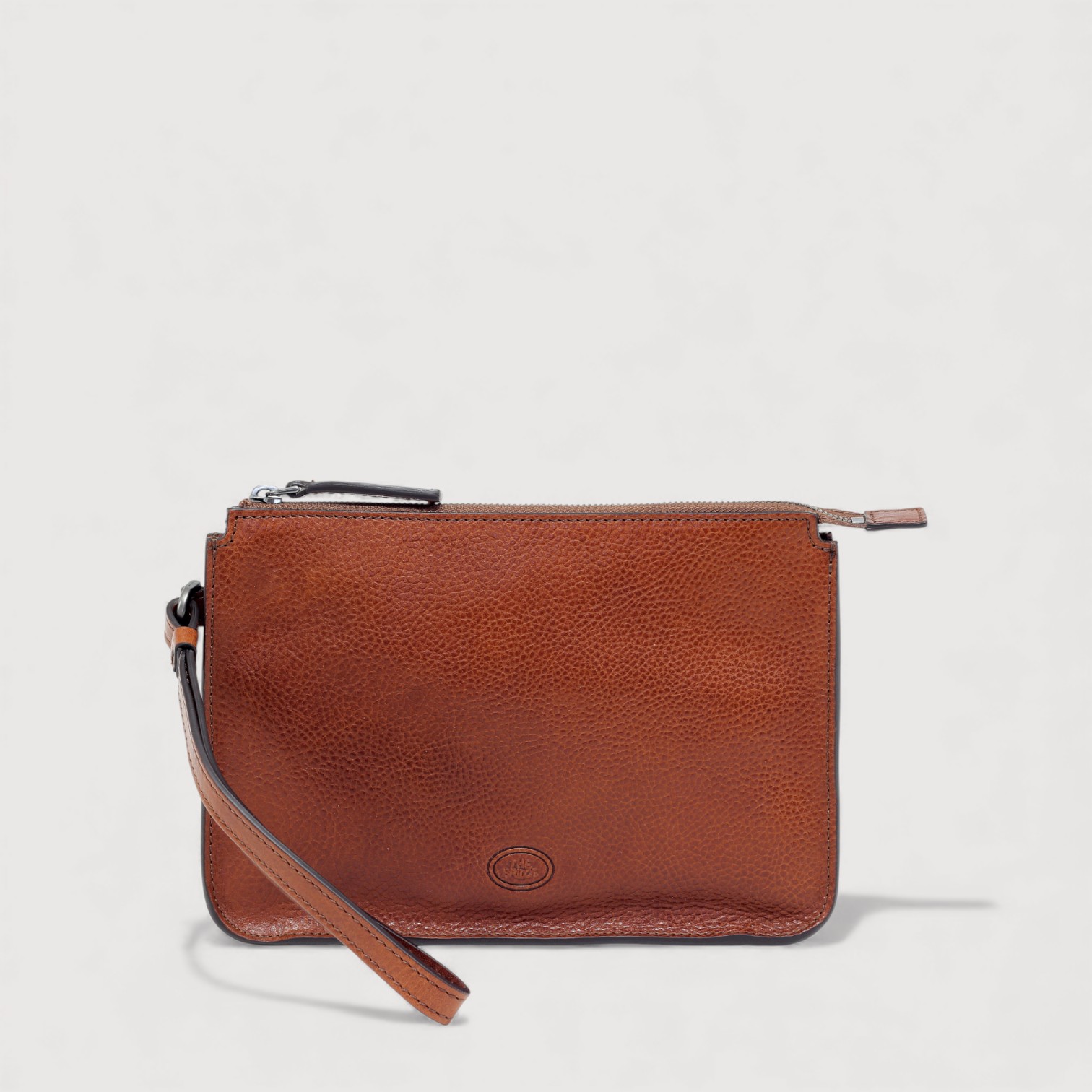 Borseta de mana THE BRIDGE din piele naturala, cu un compartiment inchis cu fermoar, buzunar interior, curea de mana. Made in Italy