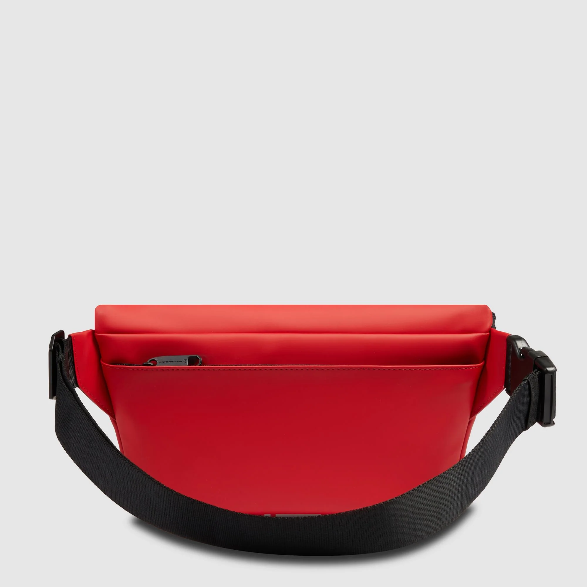 Borsetă „Piquadro x Ducati” din material textil cauciucat, rezistent la apă, cu protecție RFID, cu un compartiment inchis cu fermoar, buzunare interioare pe captuseala, doua buzunare exterioare, curea reglabila, greutate 299gr.