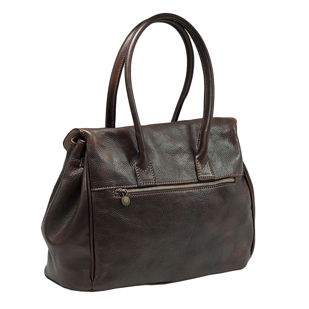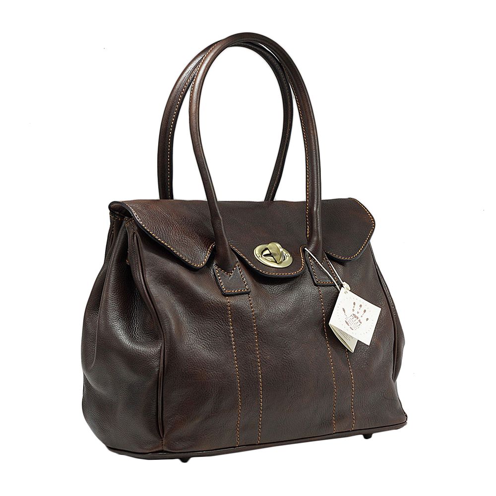 Geanta de dama Fratelli din piele naturala vachetta, la interior are doua compartimente delimitate de un buzunar cu fermoar, inchidere cu capac si accesoriu metalic, buzunare interioare multifunctionale pe captuseala, buzunar exterior, accesorii aurii, captuseala din bumbac si piele naturala. Produsa in Italia.