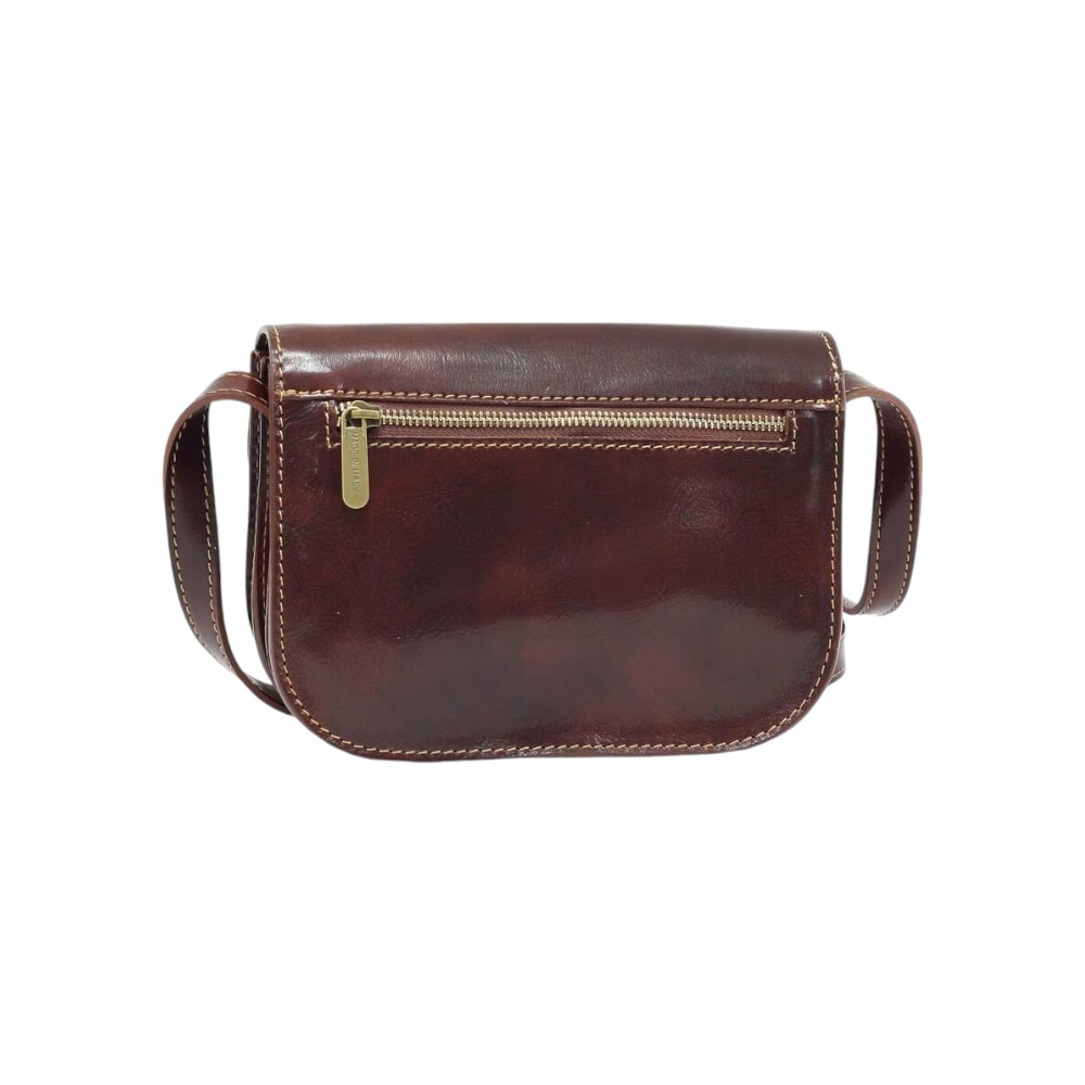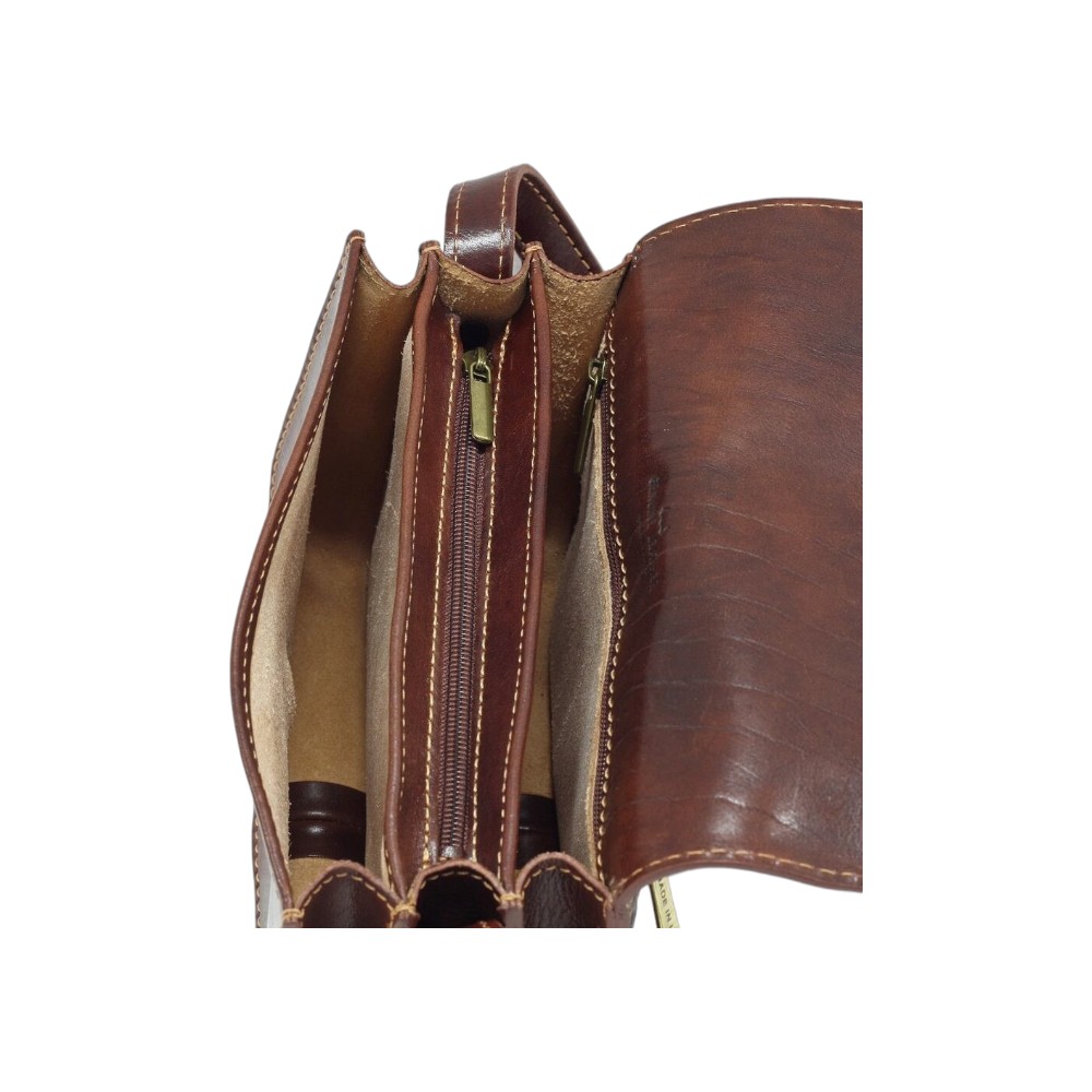 Geanta de umar, crossbody, din piele naturala, la interior are trei compartimente din care cel central inchis cu fermoar, inchidere cu capac si buton magnetic, curea de umar, reglabila, buzunar exterior. Made in Italy