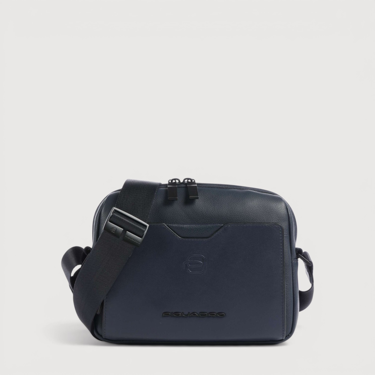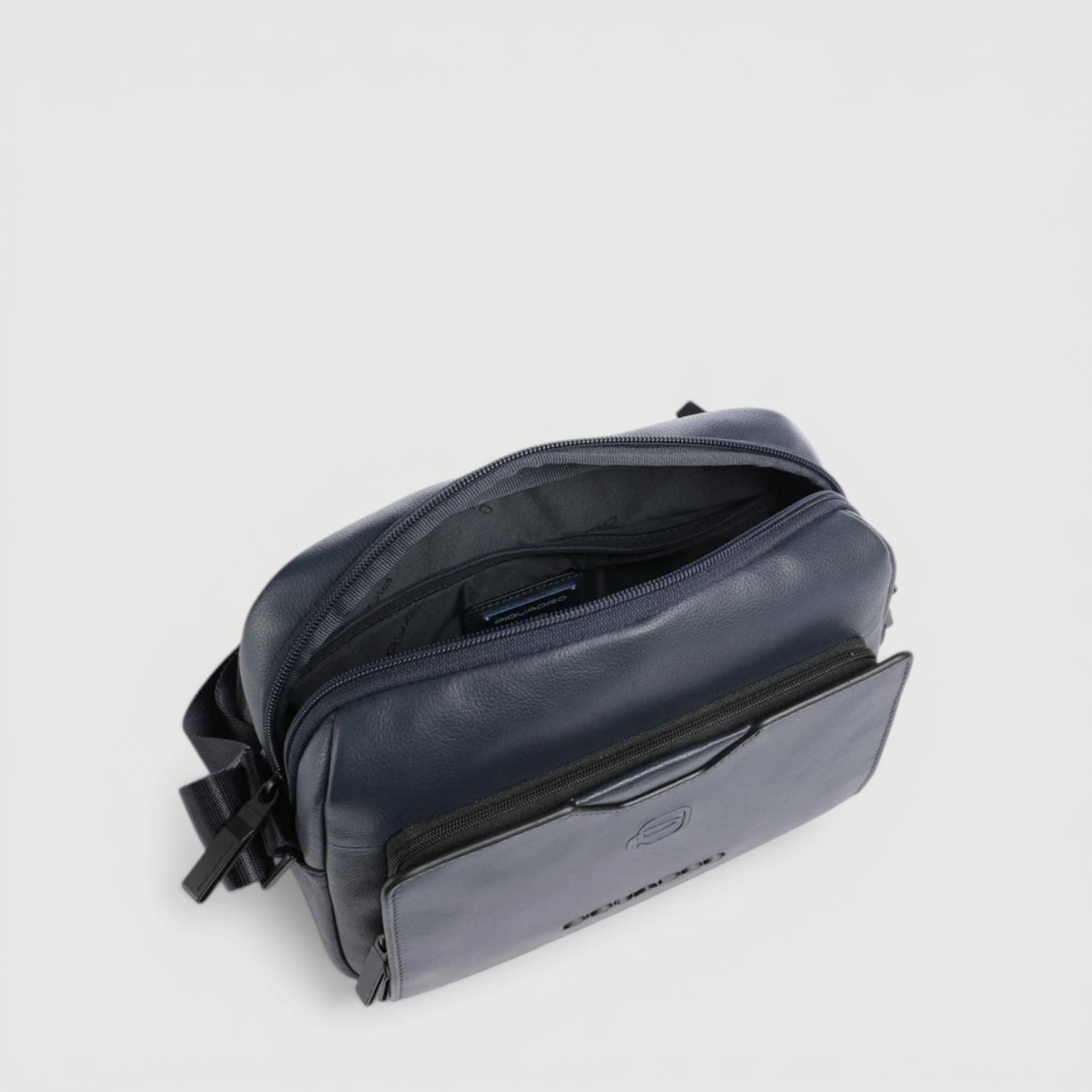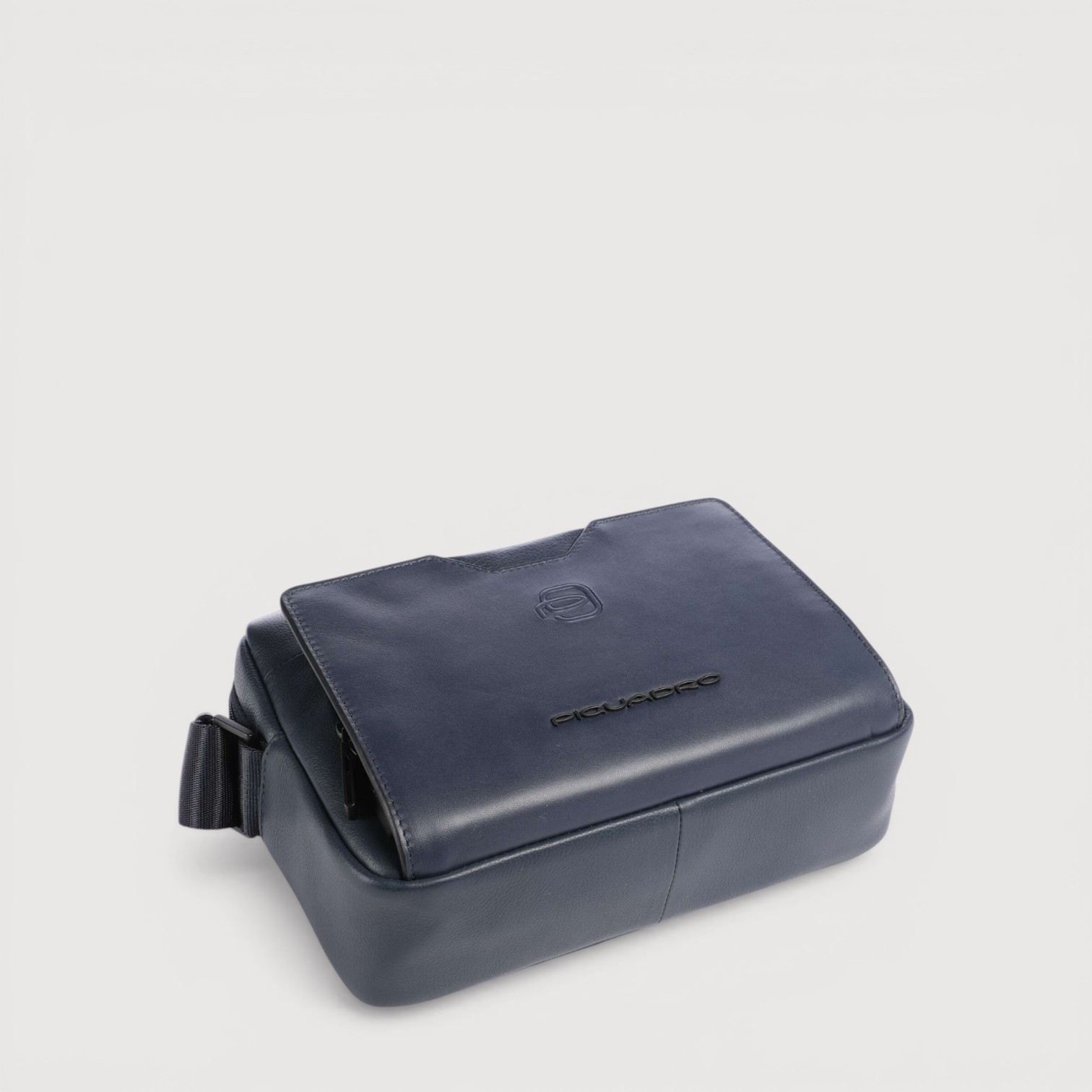 Geanta crossbody PIQUADRO din piele naturala, cu un compartiment inchis cu fermoar, buzunare interioare cu protectie pentru un mini ipad, telefon, baterie, pixuri, etc, buzunar frontal si unul pe spate, curea de umar, reglabila, sistem RFID, greutate 505gr.