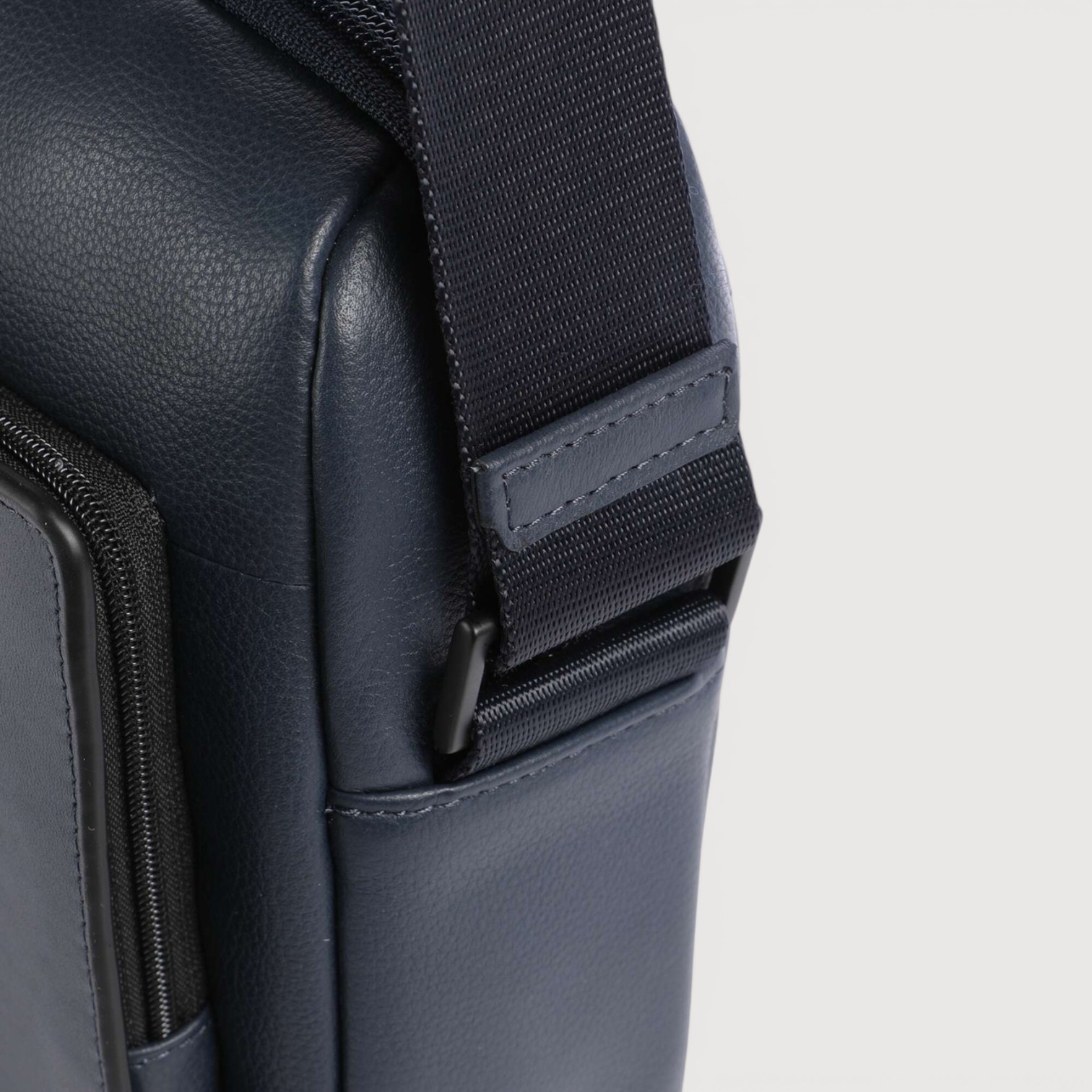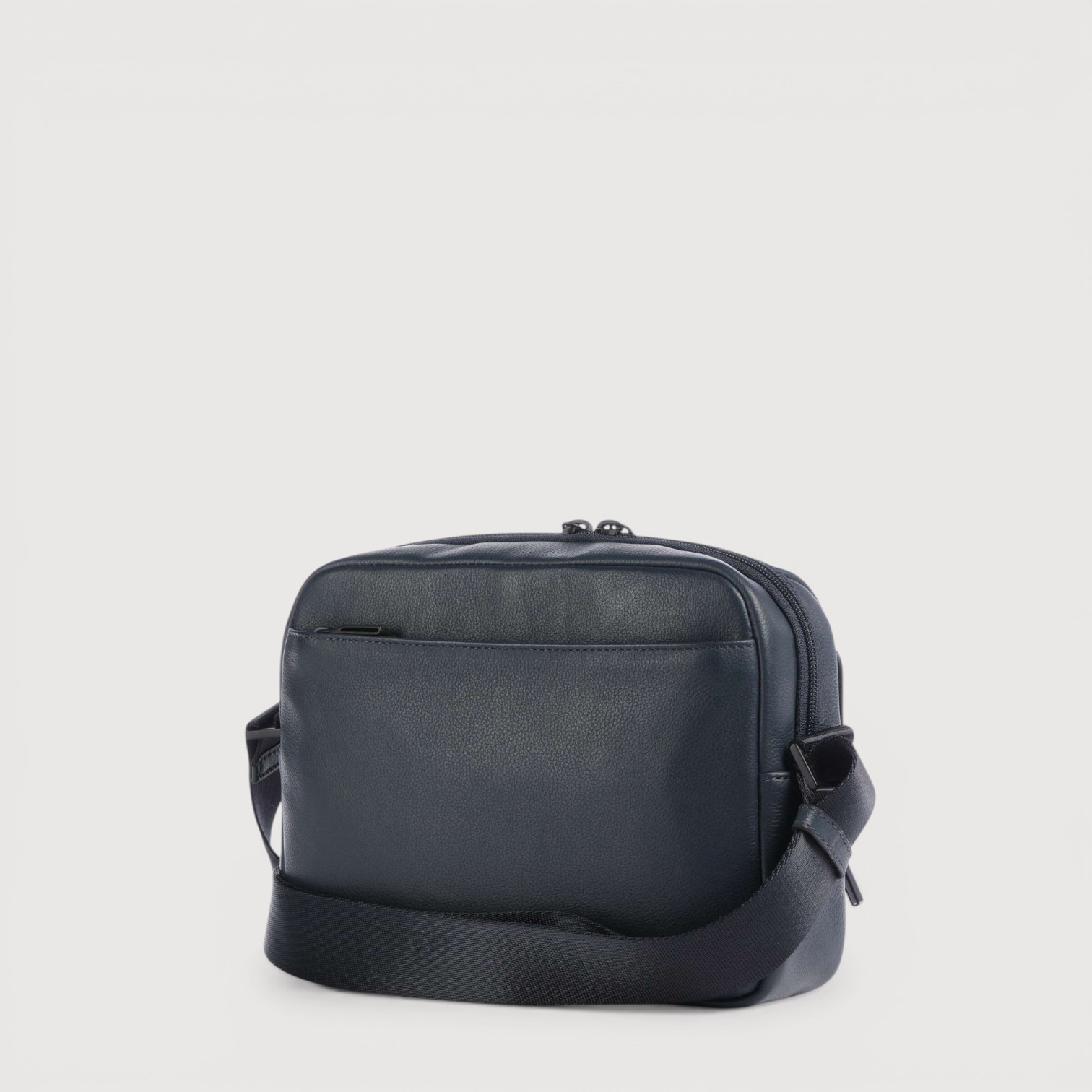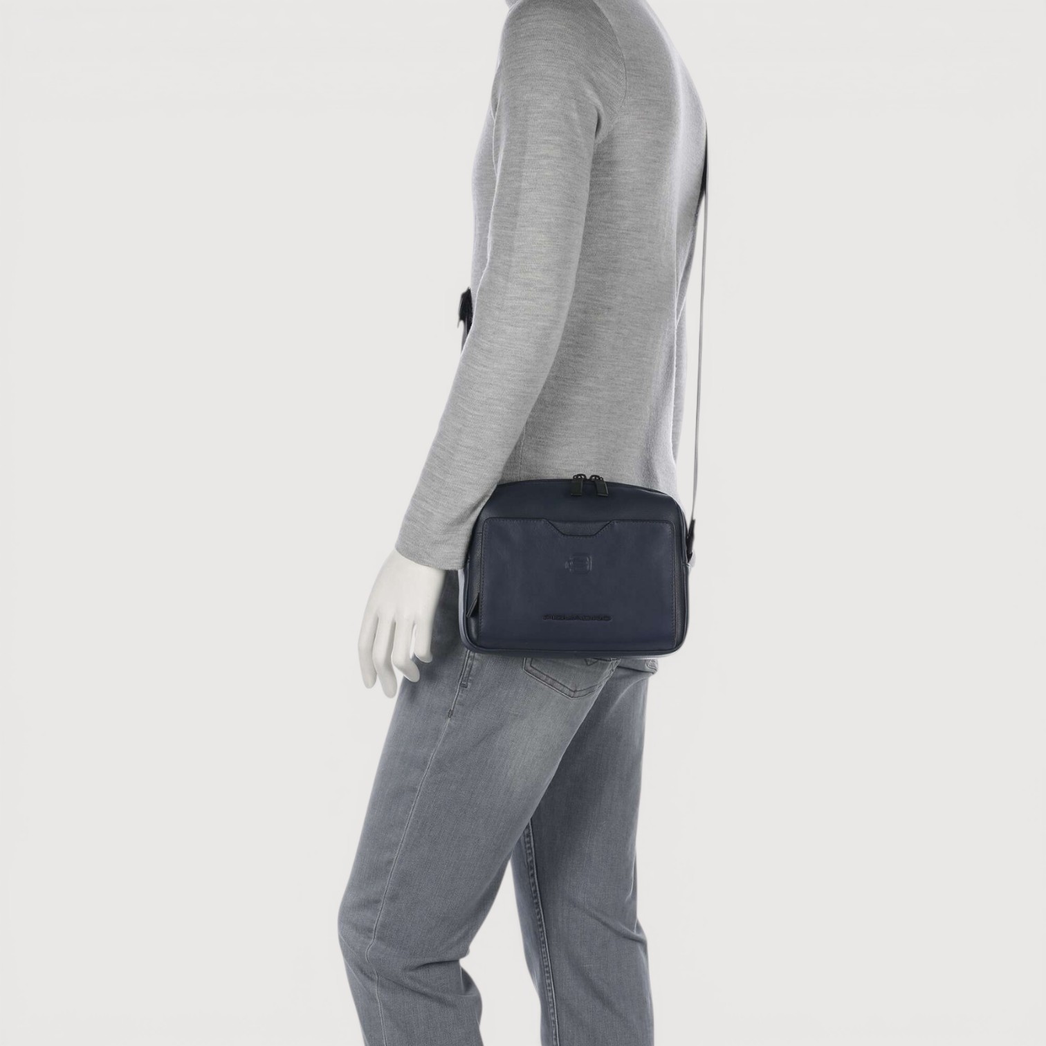 Geanta crossbody PIQUADRO din piele naturala, cu un compartiment inchis cu fermoar, buzunare interioare cu protectie pentru un mini ipad, telefon, baterie, pixuri, etc, buzunar frontal si unul pe spate, curea de umar, reglabila, sistem RFID, greutate 505gr.