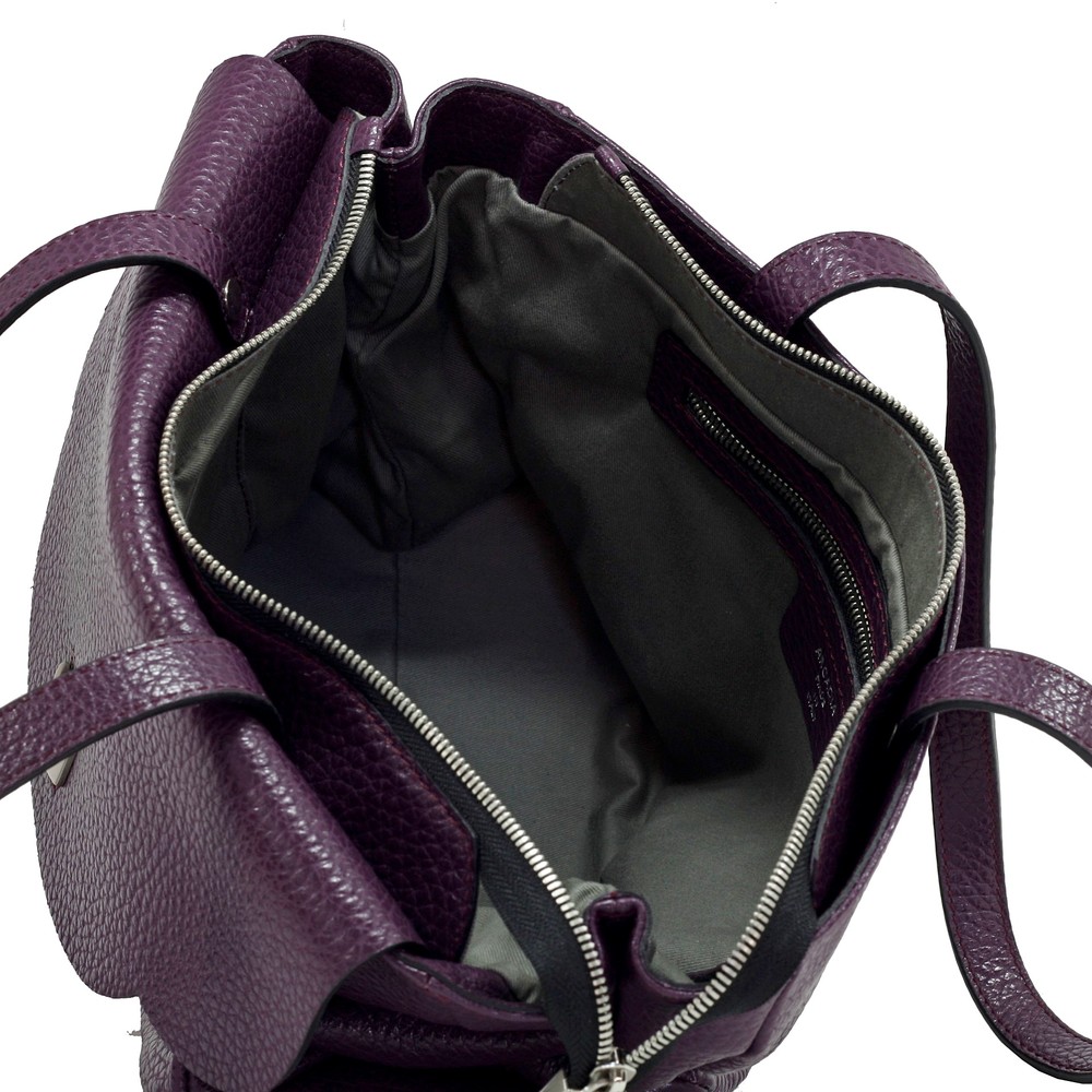 Geanta de dama Arcadia din piele naturala, cu un compartiment inchis cu fermoar, buzunare interioare multifunctionale pe captuseala, unul inchis cu fermoar, doua manere fixe din piele naturala, buzunar frontal inchis cu capac si accesoriu metalic si fermoar, accesorii argintii. Made in Italy