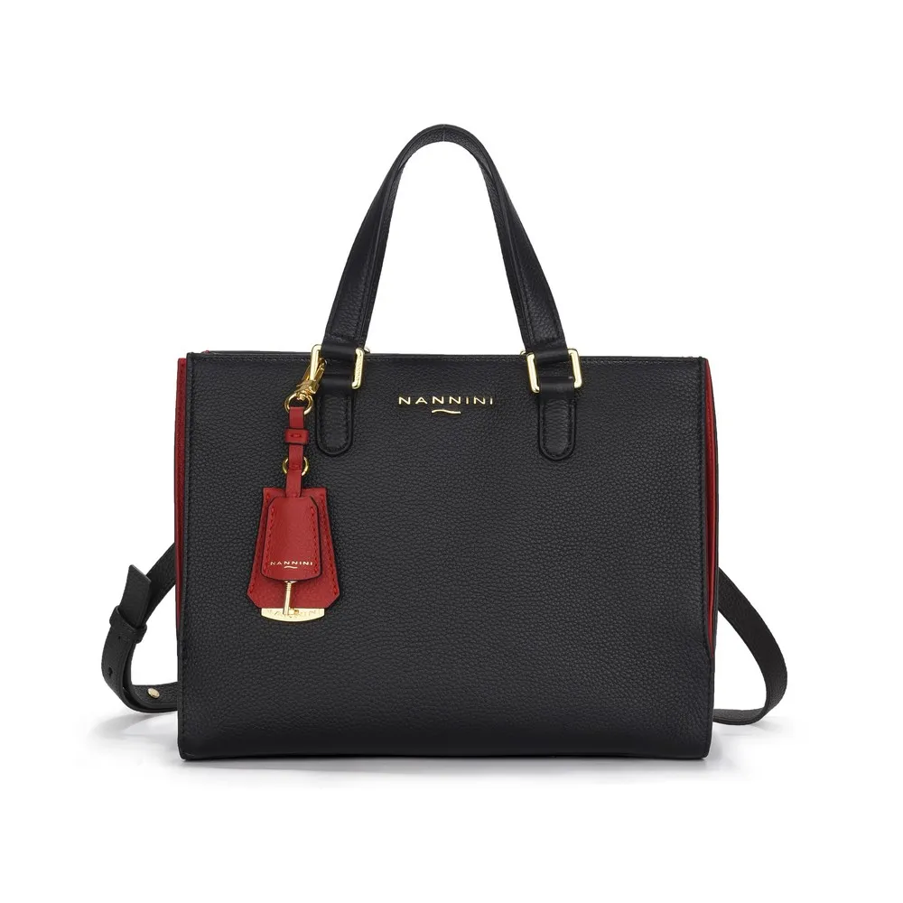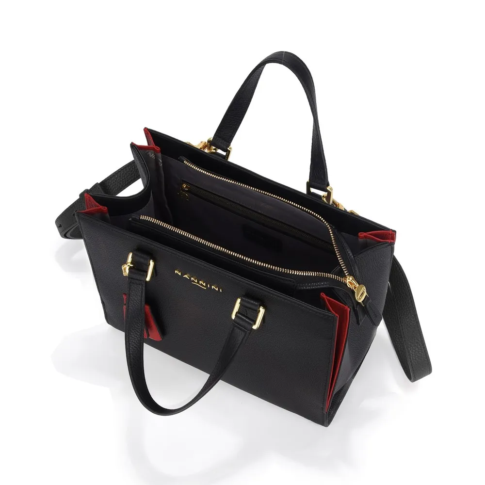 Geanta de dama NANNINI din piele naturala, cu un compartiment inchis cu fermoar, buzunare multifunctionale pe captuseala p;us unul exterior, curea de umar, din piele, reglabila si detasabila.
