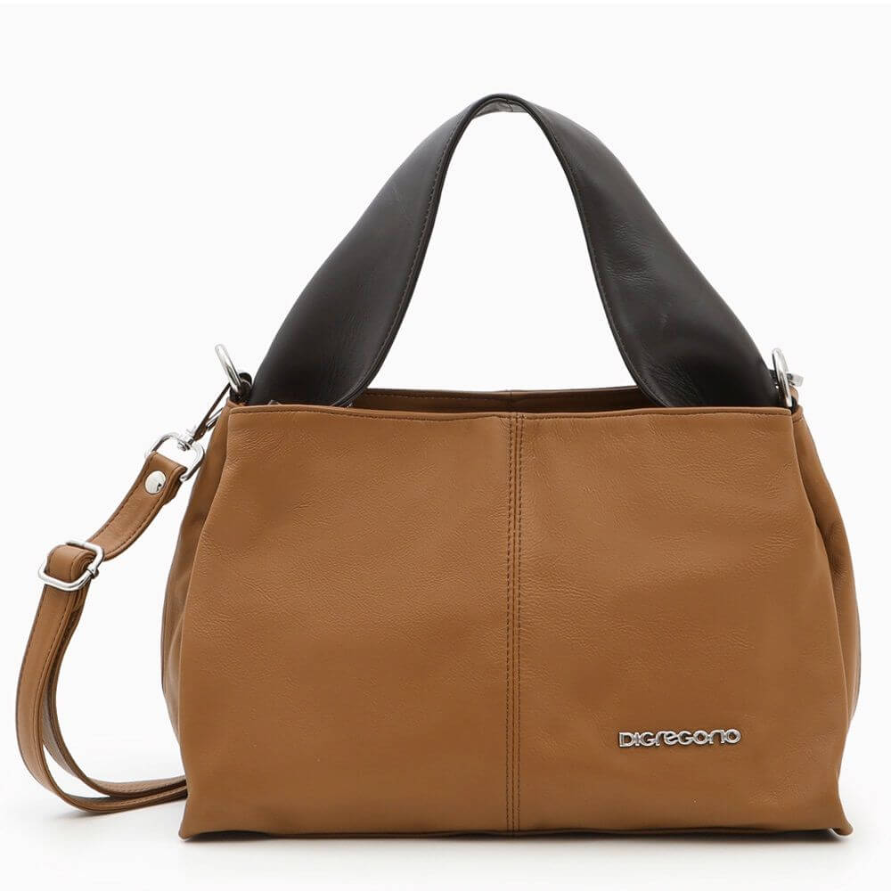 Geanta de mana DiGregorio din piele naturala, cu un compartiment inchis cu fermoar, buzunare multifunctionale pe captuseala, curea de umar, din piele, reglabia si detasabila, accesorii argintii, maner de mana, culoarea maro. Made in Italy