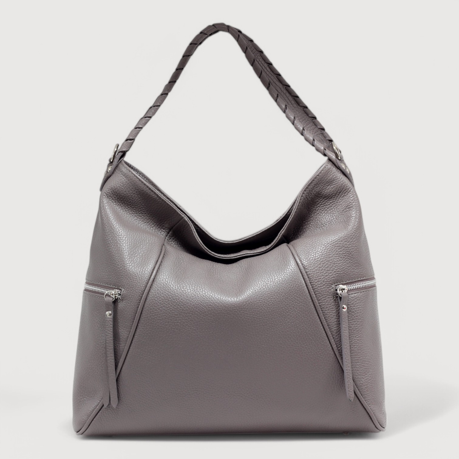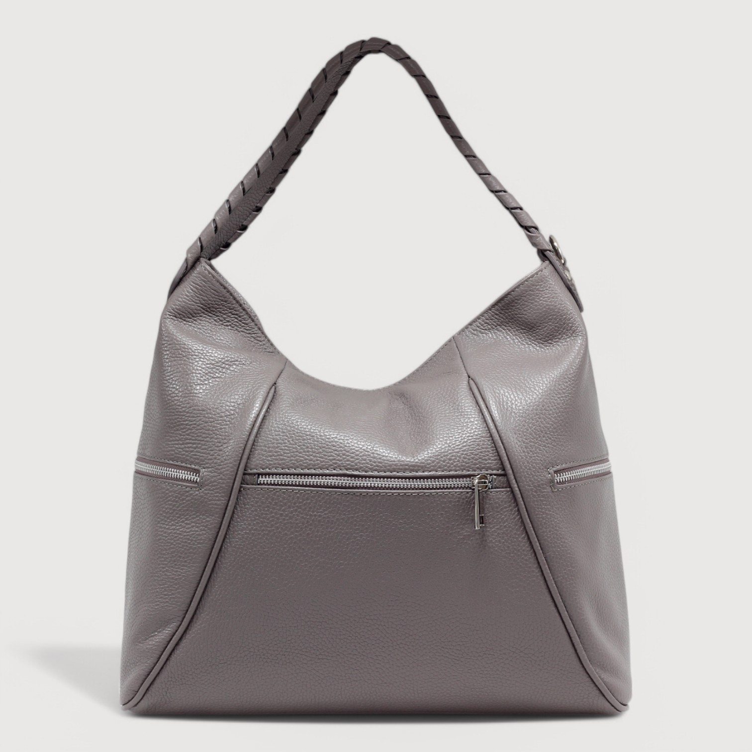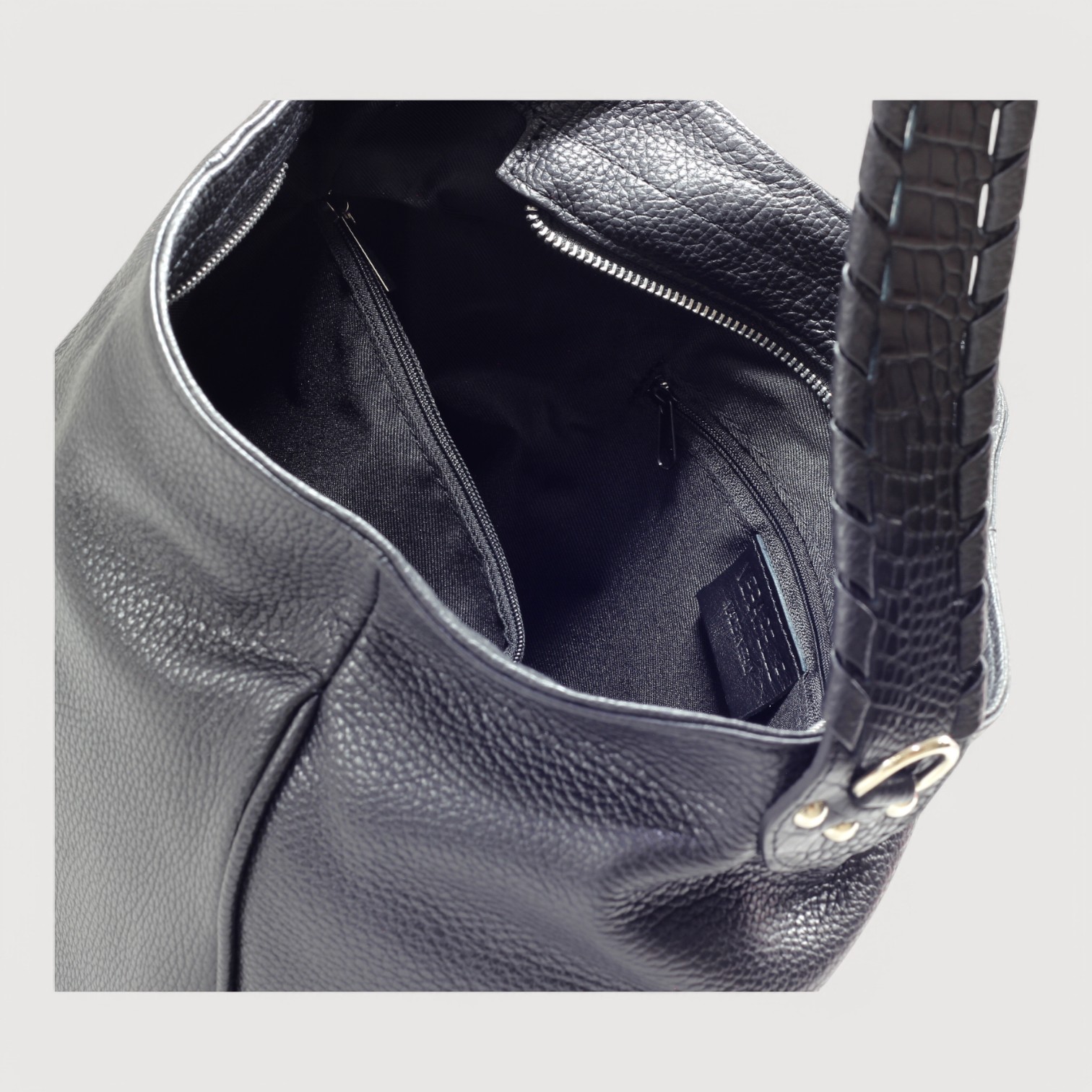Geanta de umar LUANA din piele naturala, la interior are doua compartimente delimitate de un buzunar cu fermoar, buzunare multifunctionale pe captseala si trei exterioare, inchidere cu fermoar, curea de umar, din piele, reglabila si detasabila, accesorii argintii, maner de umar avand decor cusatura manuala. Made in Italy