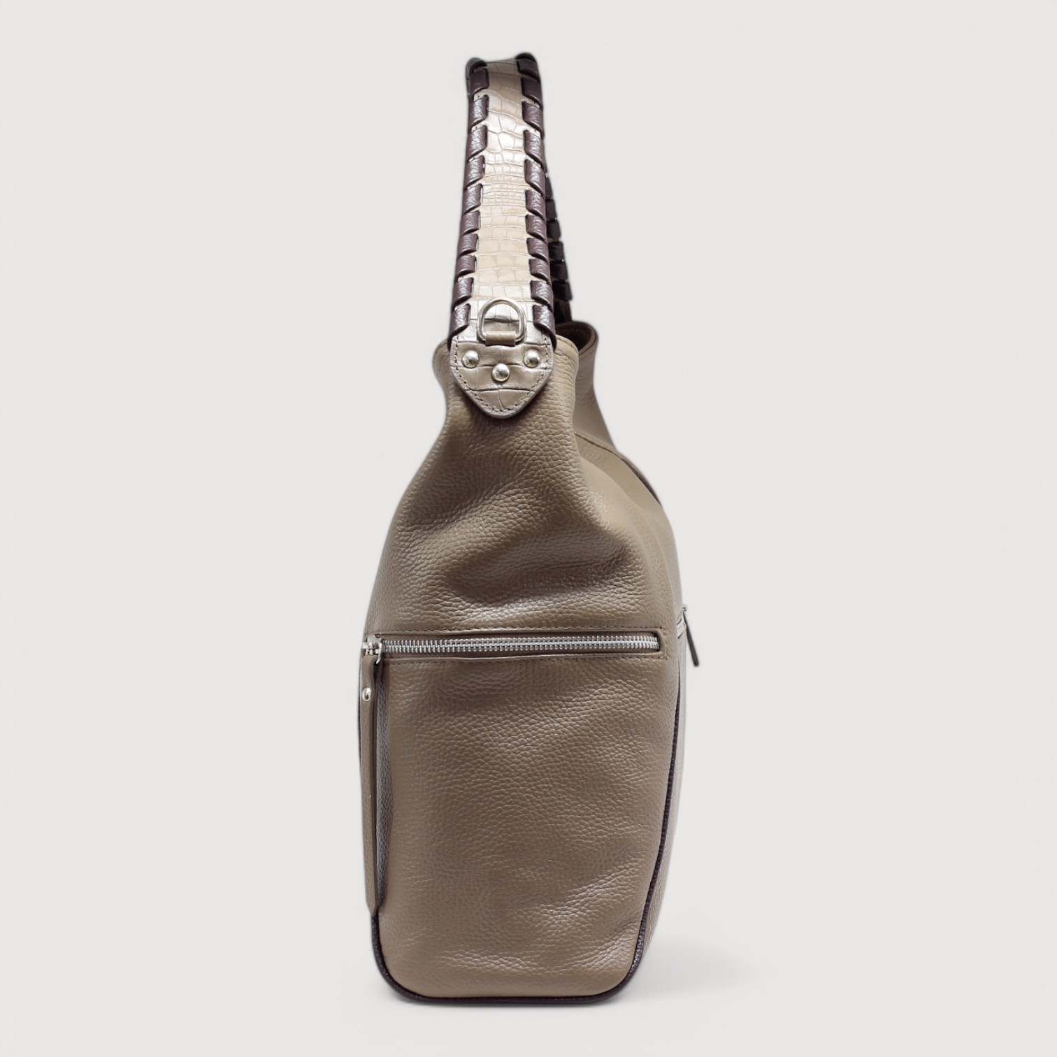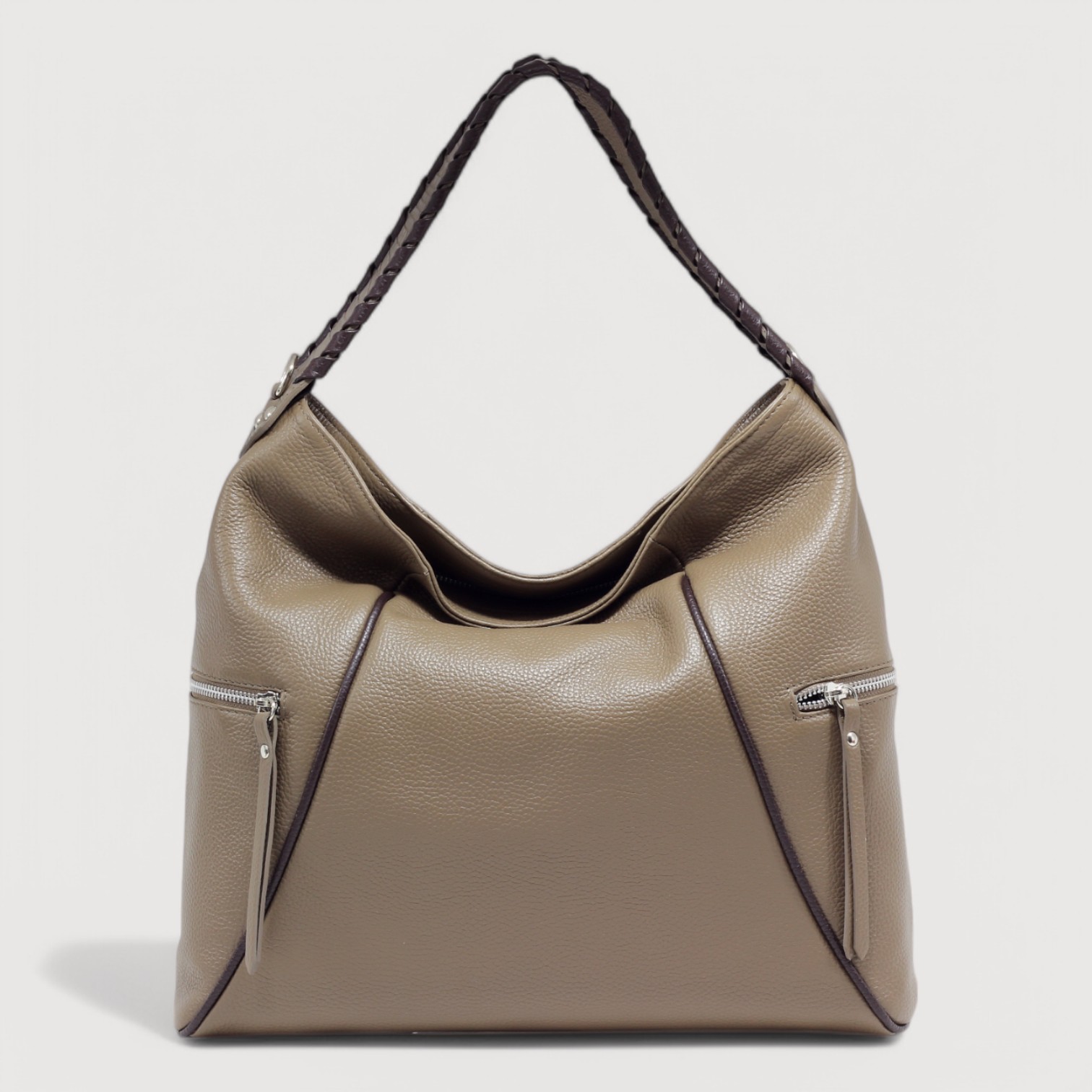 Geanta de umar LUANA din piele naturala, la interior are doua compartimente delimitate de un buzunar cu fermoar, buzunare multifunctionale pe captseala si trei exterioare, inchidere cu fermoar, curea de umar, din piele, reglabila si detasabila, accesorii argintii, maner de umar avand decor cusatura manuala. Made in Italy