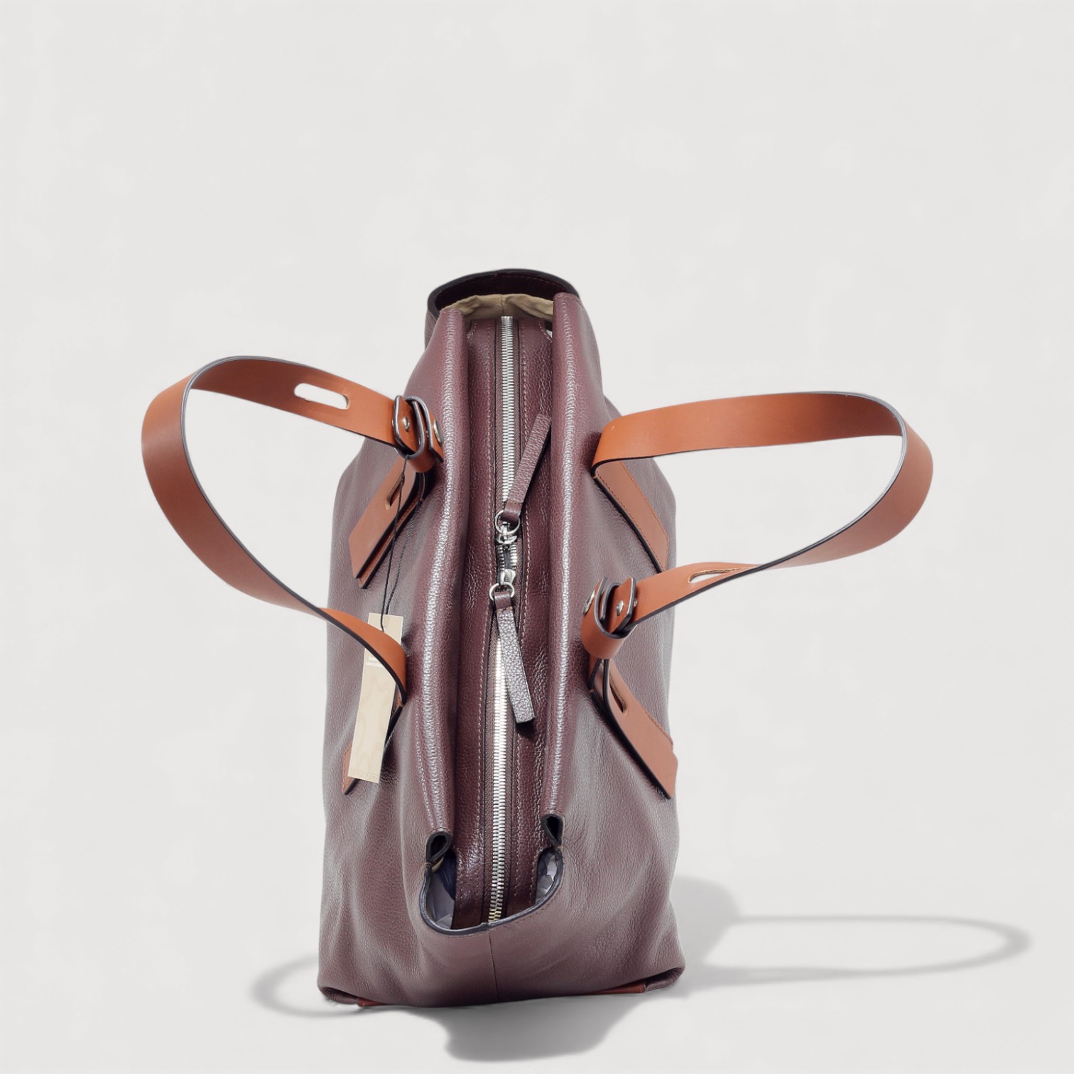 Geanta de umar LUNATIKA din piele naturala superioara tip ,,cervo,, cu un compartiment inchis cu fermoar, buzunare interioare multifunctionale, curea de umar, reglabila pe lungime. MADE IN ITALY