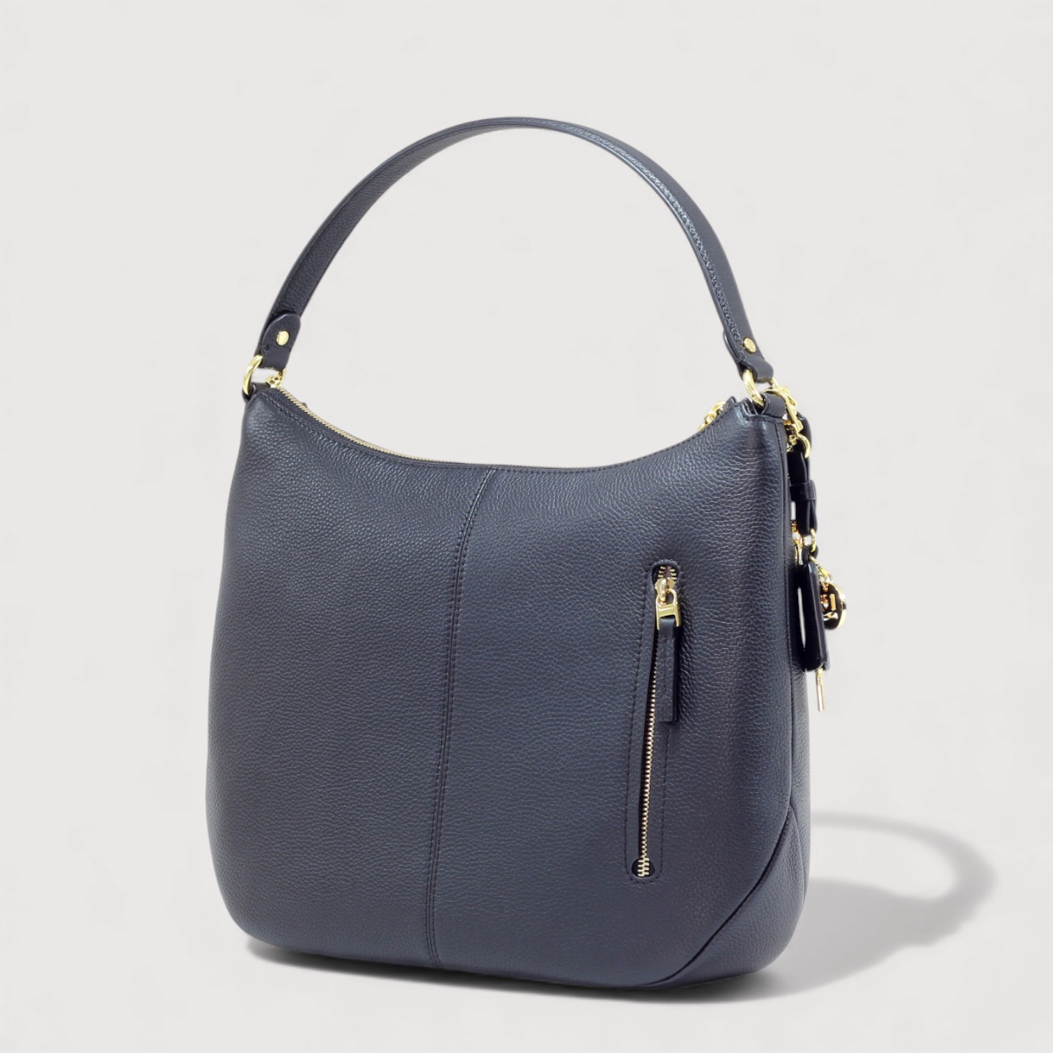 Geanta de umar NANNINI din piele naturala, cu un compartiment inchis cu fermoar, buzunare interioare multifunctionale si unul exterior, curea de umar, din piele, reglabila si detasabila, accesorii aurii.