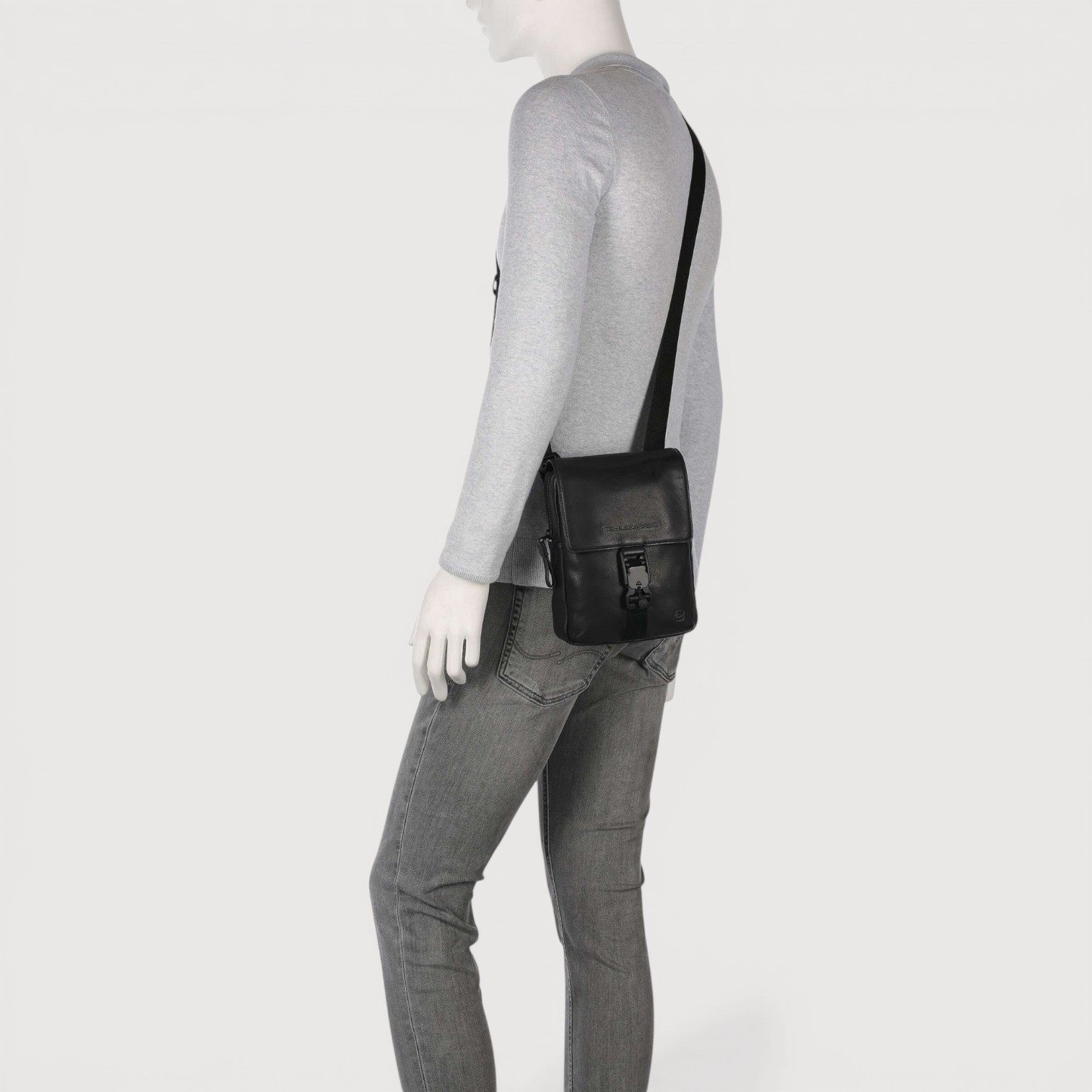 Geanta de umar PIQUADRO din piele naturala, cu un compartiment inchis cu fermoar si capac cu inchidere cu un accesoriu cu magnet, buzunar interior cu protectie pentru un mini ipad, telefon, pixuri, connequ, etc, buzunar exterior, curea de umar, reglabila, greutate  0,45kg.