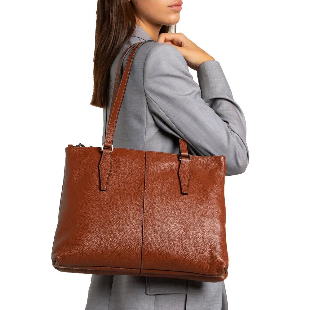 Geanta de umar RIPANI din piele naturala, cu doua compartimente inchise cu fermoar, buzunar exterior intre cele doua, buzunare interioare multifunctionale. Made in Italy