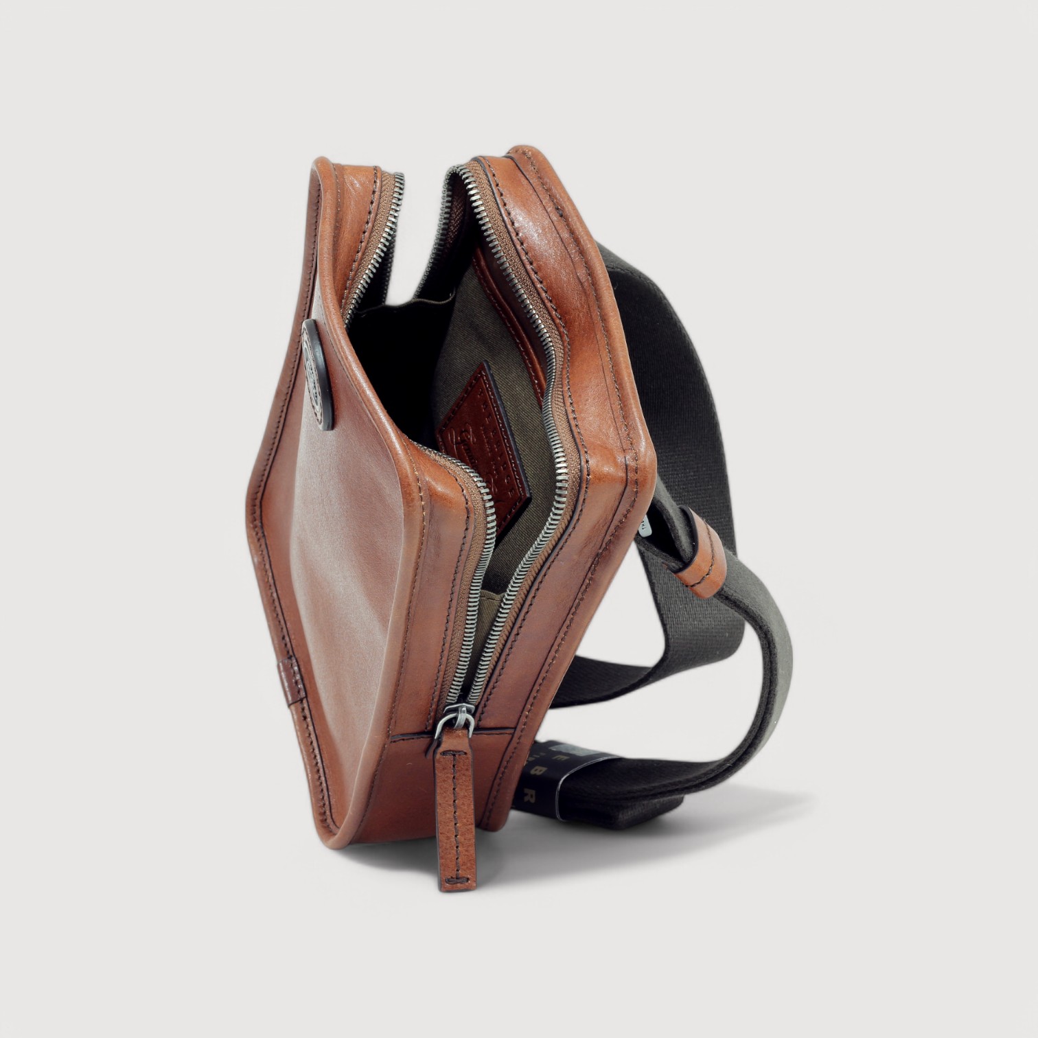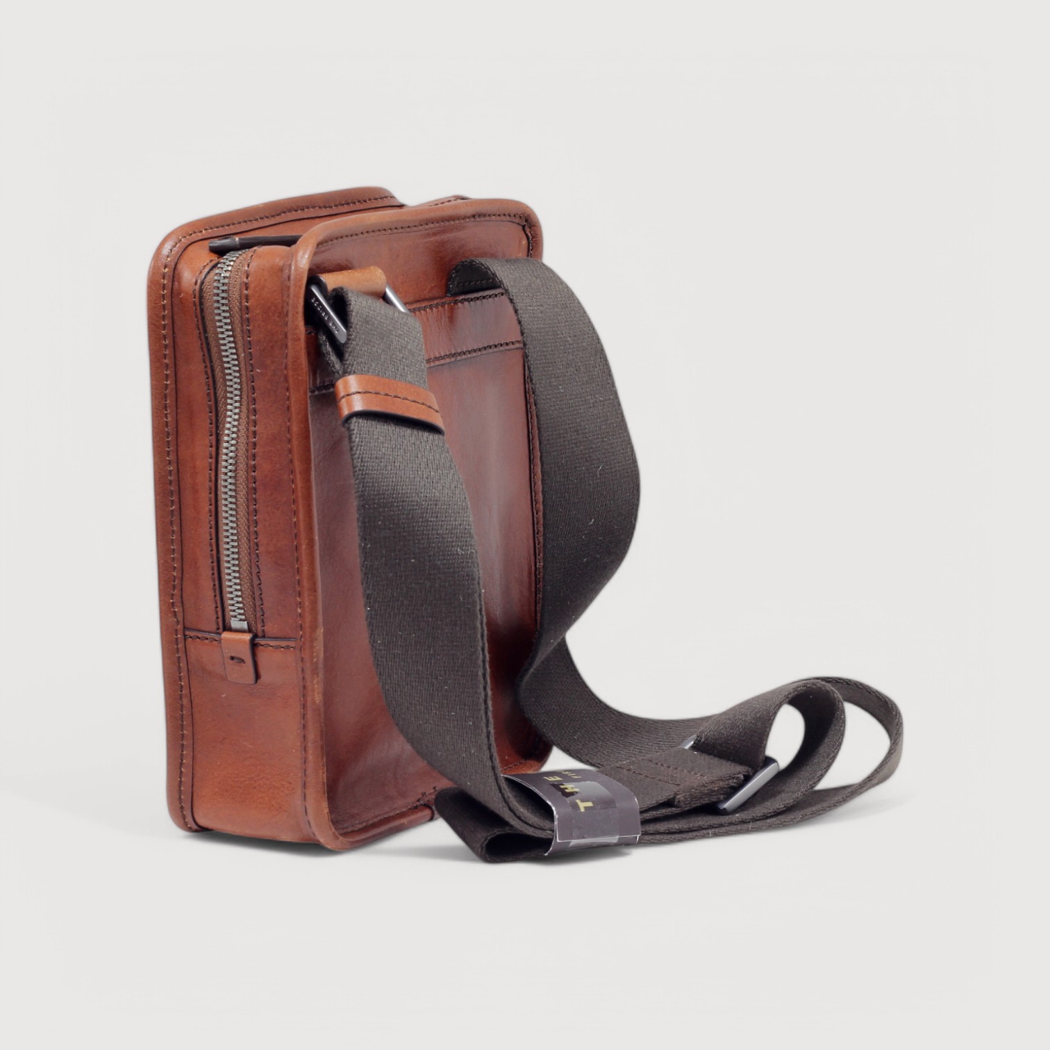 Geanta de umar THE BRIDGE din piele naturala, cu un compartiment inchis cu fermoar, buzunare interioare multifunctionale, curea de umar, din chinga, reglabila. Made in Italy