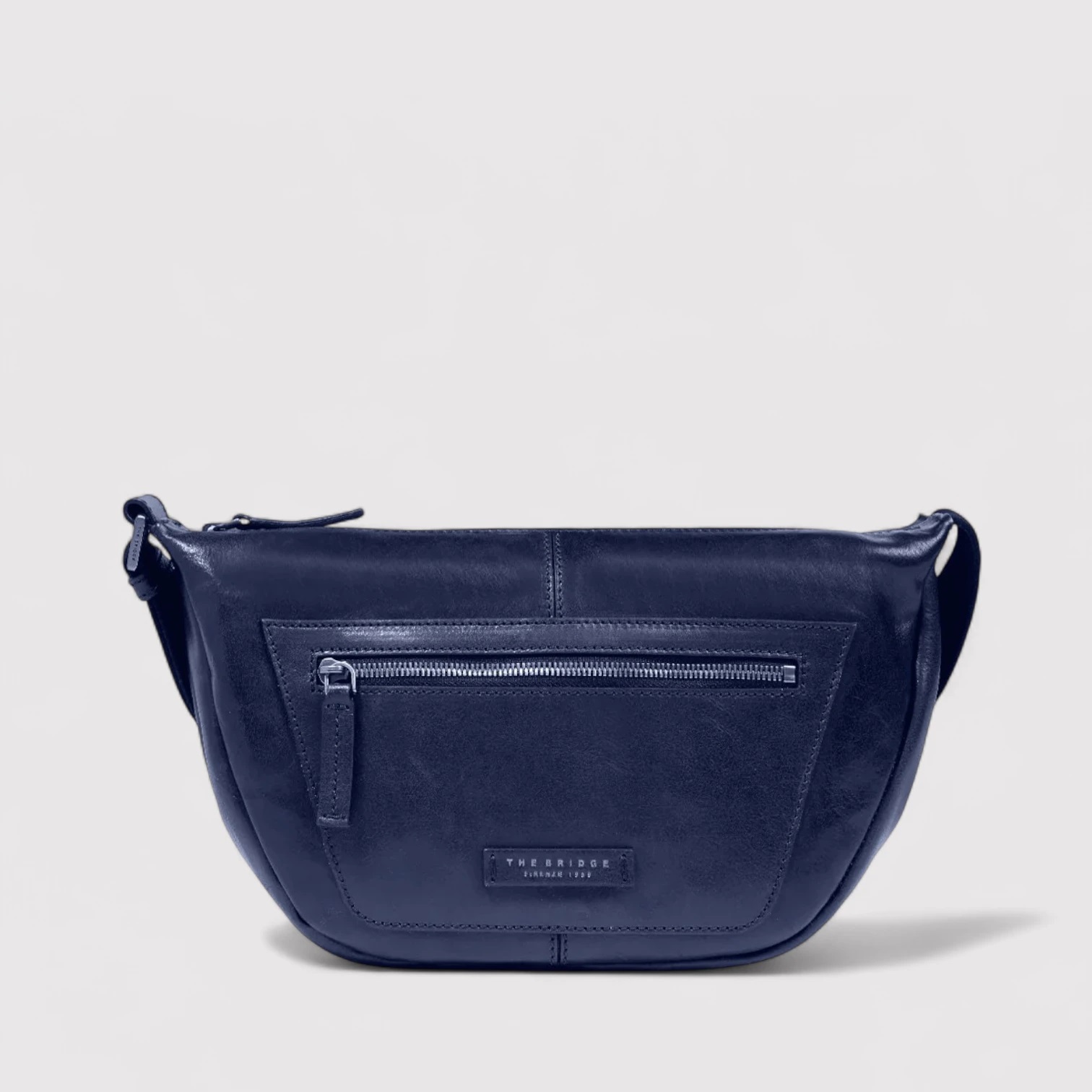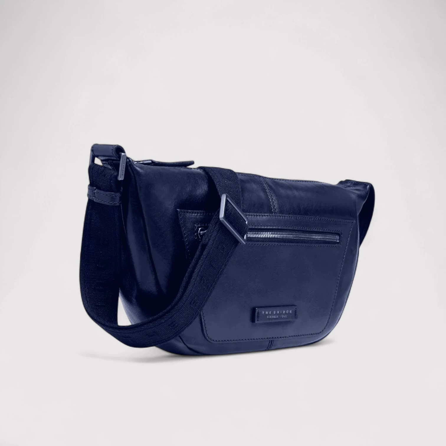 Geanta de umar THE BRIDGE din piele naturala, cu un compartiment inchis cu fermoar, buzunare interioare si unul exterior, curea de umar, din chinga, reglabila