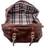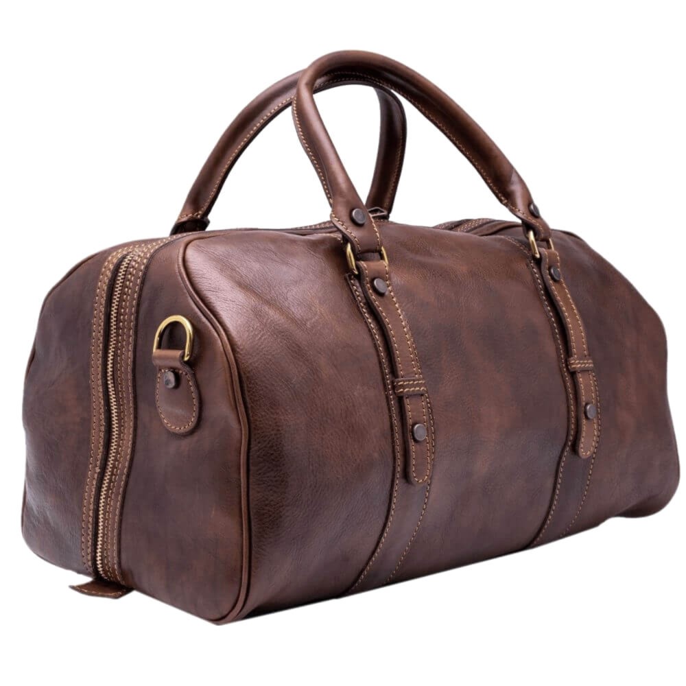 Geanta voiaj din piele naturala vachetta cu un compartiment inchis cu fermoar, buzunar pe captuseala (bumbac) pentru laptop, curea de umar, din piele, reglabila si detasabila, greutate 1,9kg, dimensiuni pentru un bagaj de mana la avion. Made in Italy.
