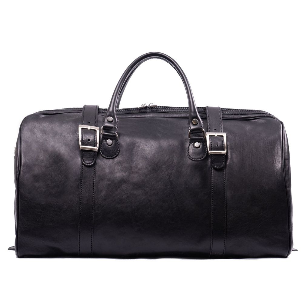 Geanta de voiaj din piele naturala vachetta, cu un compartiment, buzunar interior, captuseala din bumbac, inchidere cu fermoar plus 2 curele verticale care se inchid cu o catarama, fermoar YKK, greutate 1,7 kg. Made in Italy.