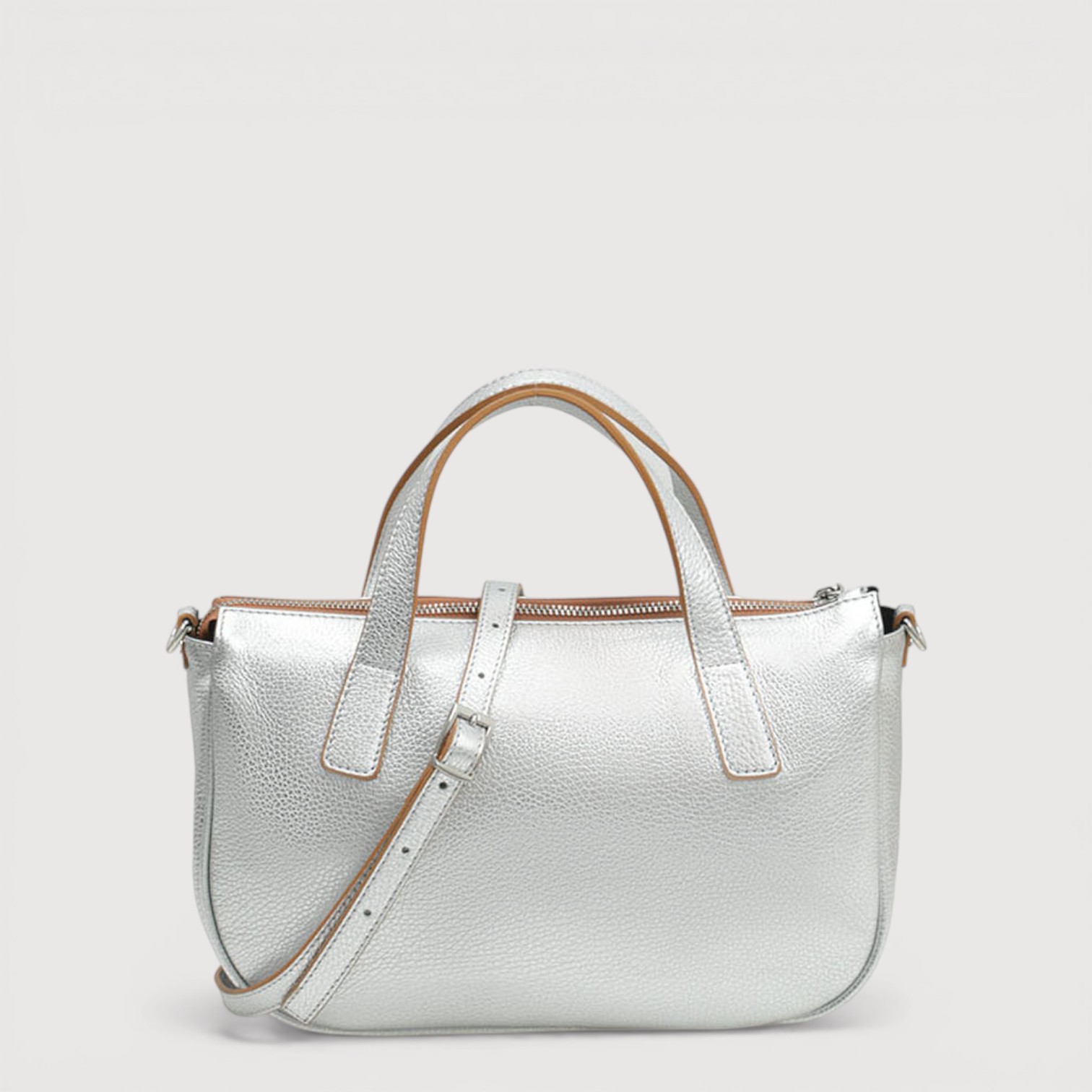 Geanta din piele naturala RIPANI , cu un compartiment inchis cu fermoar, buzunare interioare multifunctionale plus unul exterior inchis cu un accesoriu metalic, curea de umar, din piele, reglabila si detasabila. Made in Italy