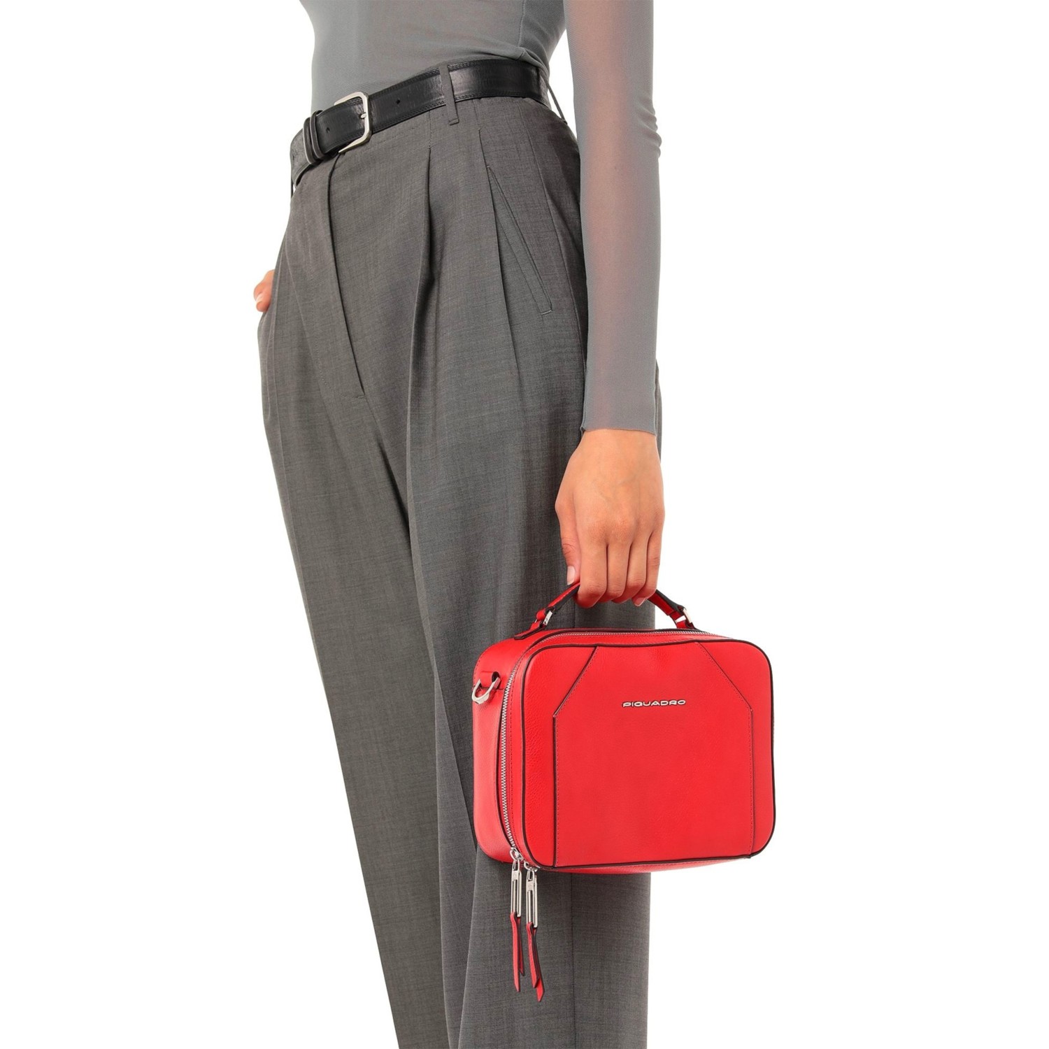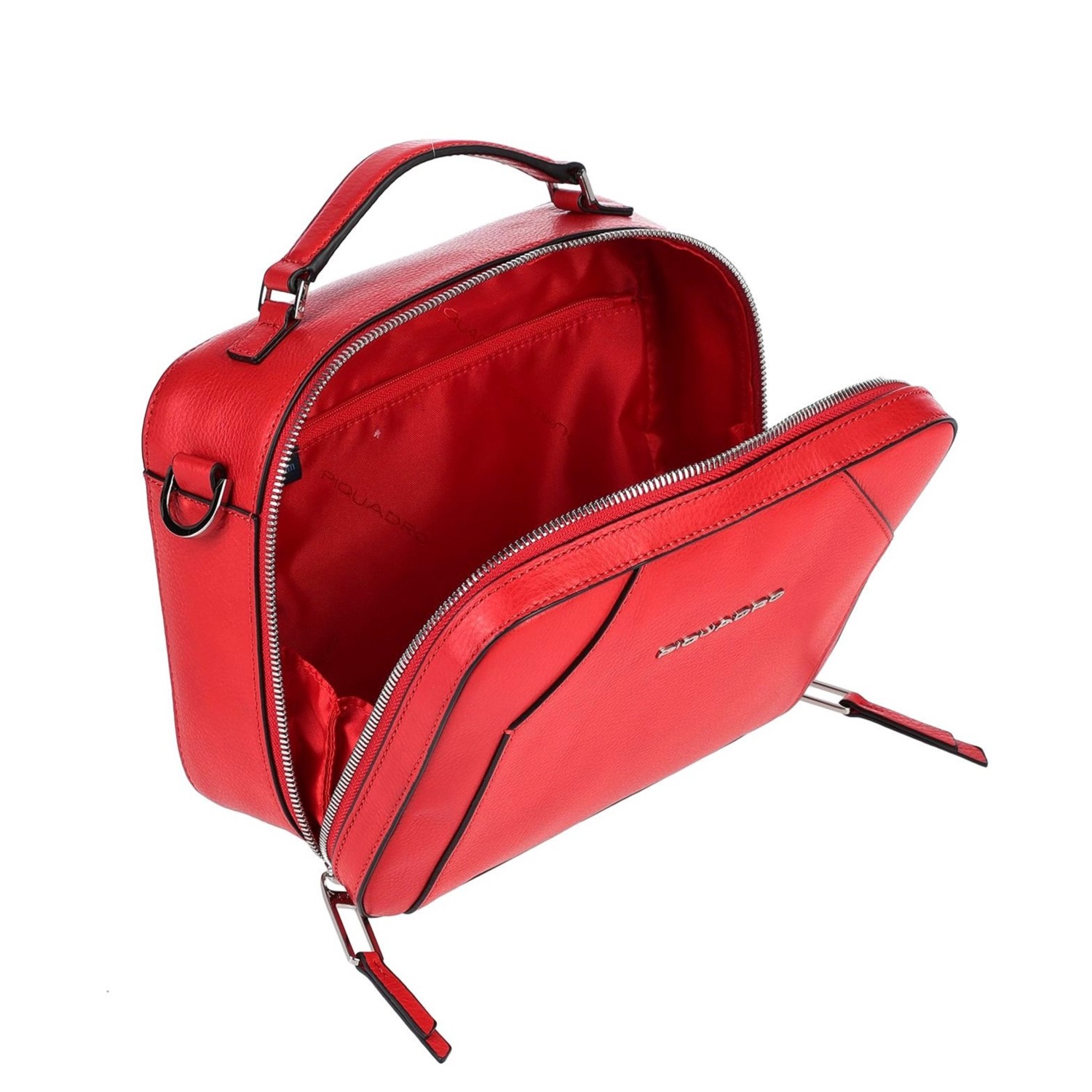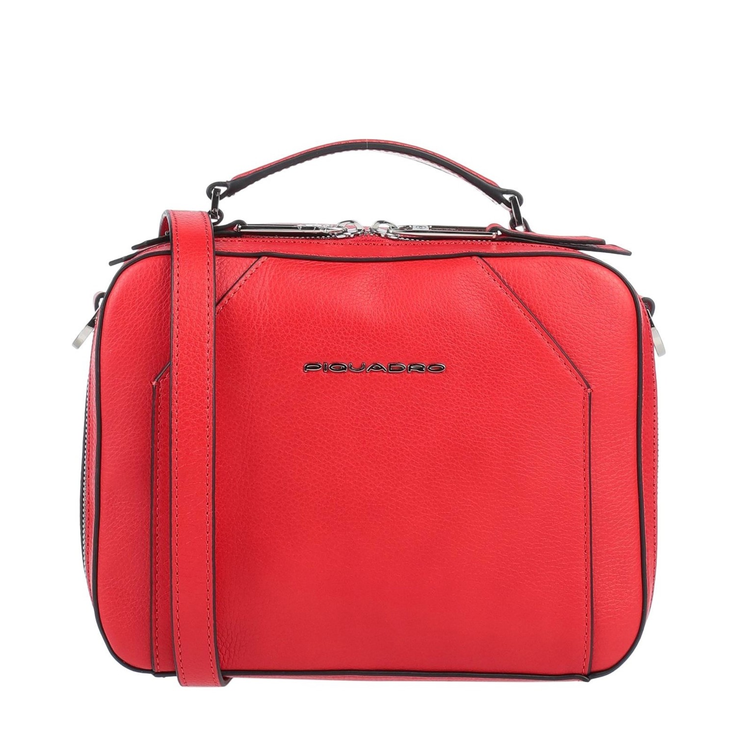 Geanta messenger ( camera case ) PIQUADRO din piele naturala, cu un compartiment inchis cu fermoar, buzunare interioare multifunctionale, curea de umar, din piele, reglabila si detasabila (152cm), greutate 0,4 kg, volum 3,5L, accesorii argintii, maner de mana.
