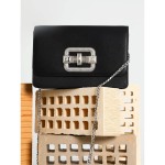 Geanta neagra, eleganta, CROMIA, din piele naturala, accesorii argintii, 1405578