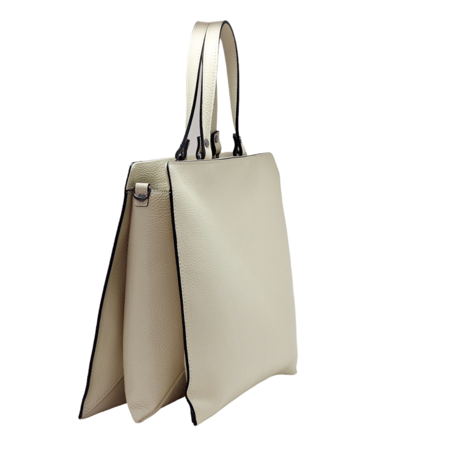 Geanta office RIPANI din piele naturala, cu trei compartimente, inchidere cu fermoar, buzunare interioare multifunctionale, ( 4 portcarduri, 2 pentru pixuri, etc), curea de umar, din piele, reglabila si detasabila, accesorii nickel. Made in Italy