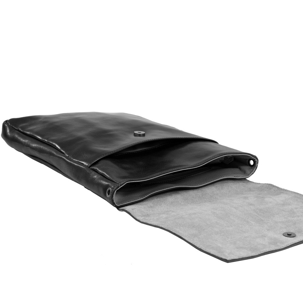 Geanta din piele naturala vachetta pentru barbati, la interior are un compartiment, buzunar cu fermoar pe captuseala (sintetica tip maialino, rezistenta si lavabila), buzunar exterior frontal in care se gasesc suporturi pentru pixuri, carduri, celular, inchidere cu capac cu buton magnetic, captuseala capacului este piele naturala, buzunar exterior inchis cu fermoar, curea de umar reglabila. Produsa in Italia