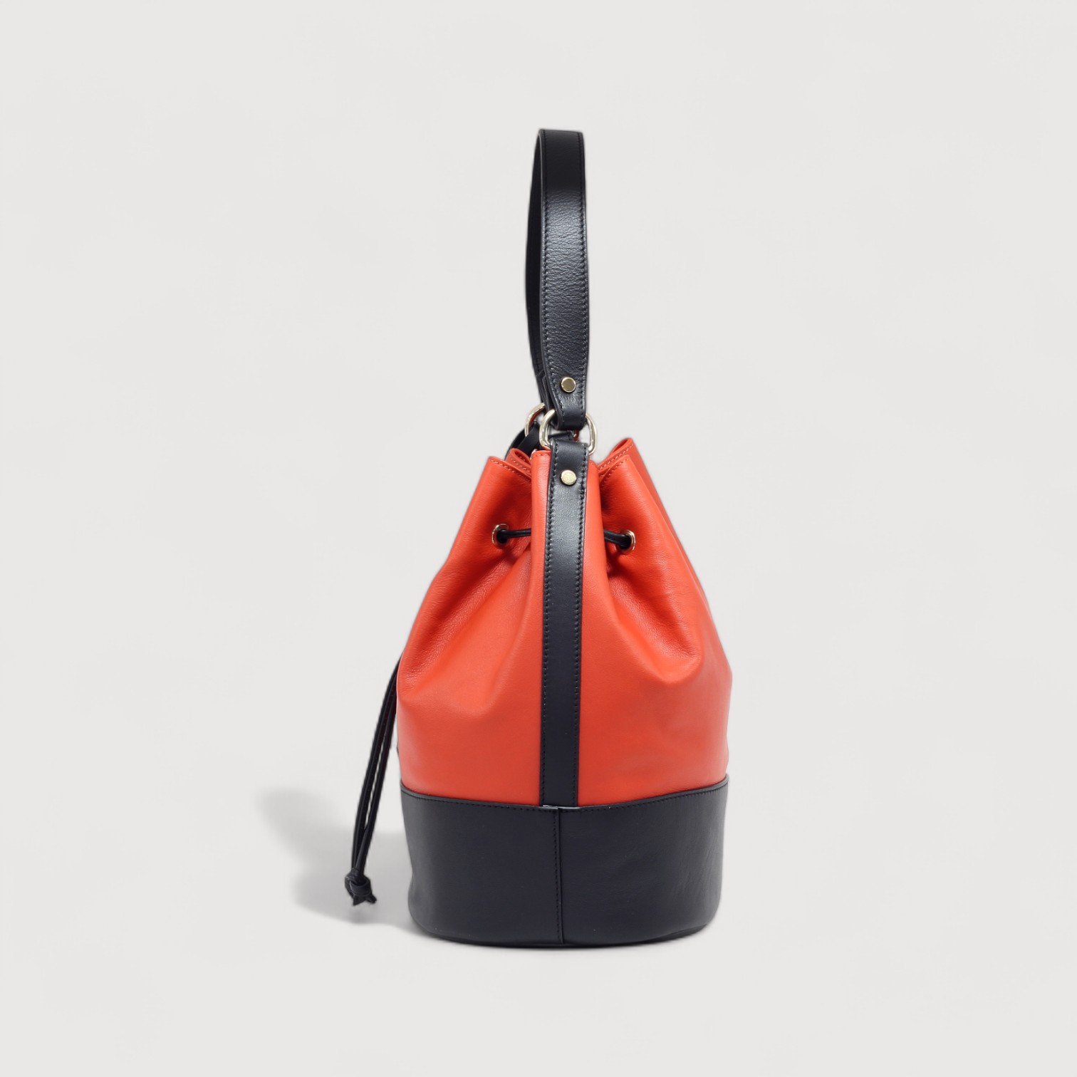 Geanta RIPANI tip sac, din piele naturala, cu un compartiment inchis cu un snur din piele, buzunare interioare multifunctionale, curea de umar, din piele, reglabila si detasabila, accesorii aurii. Made in Italy
