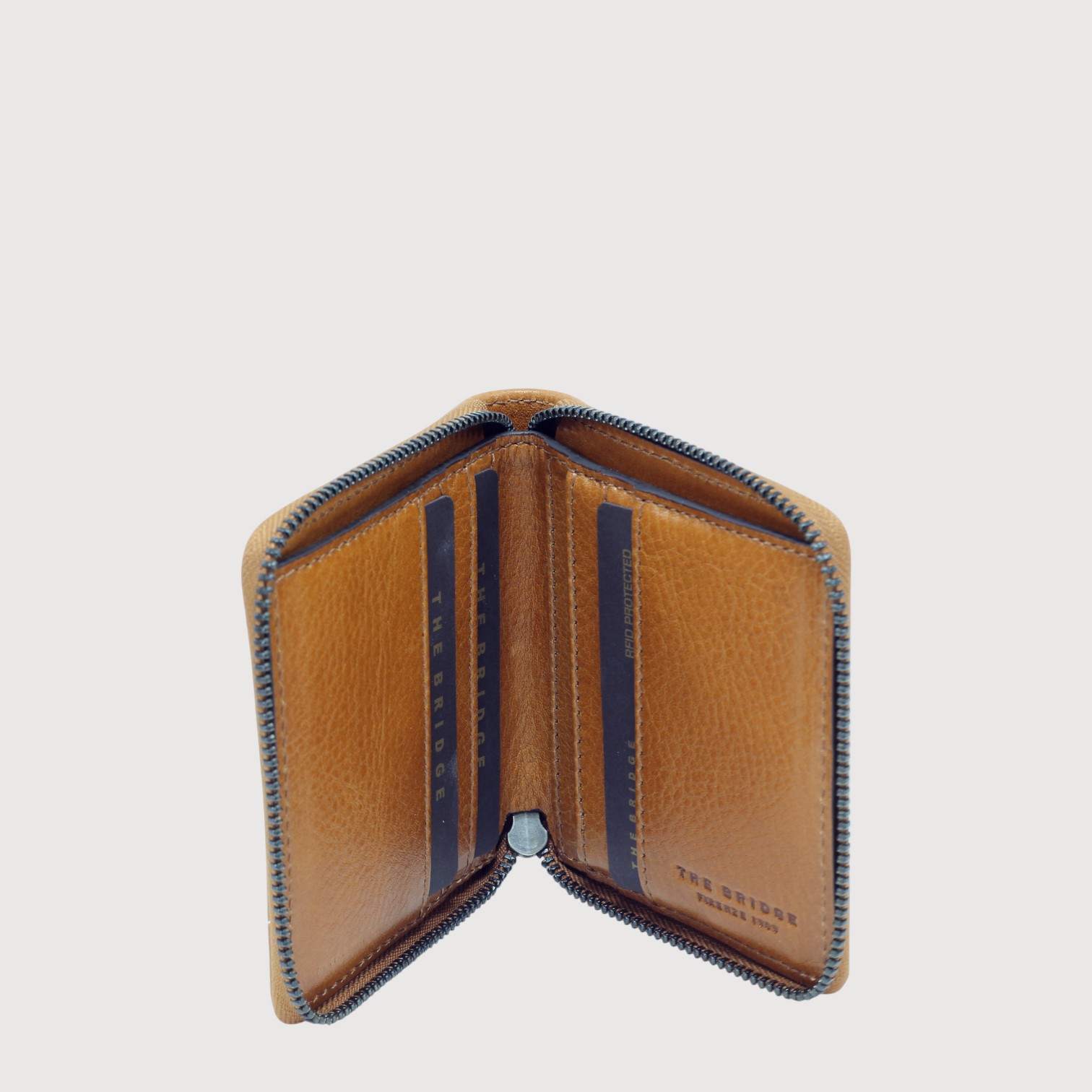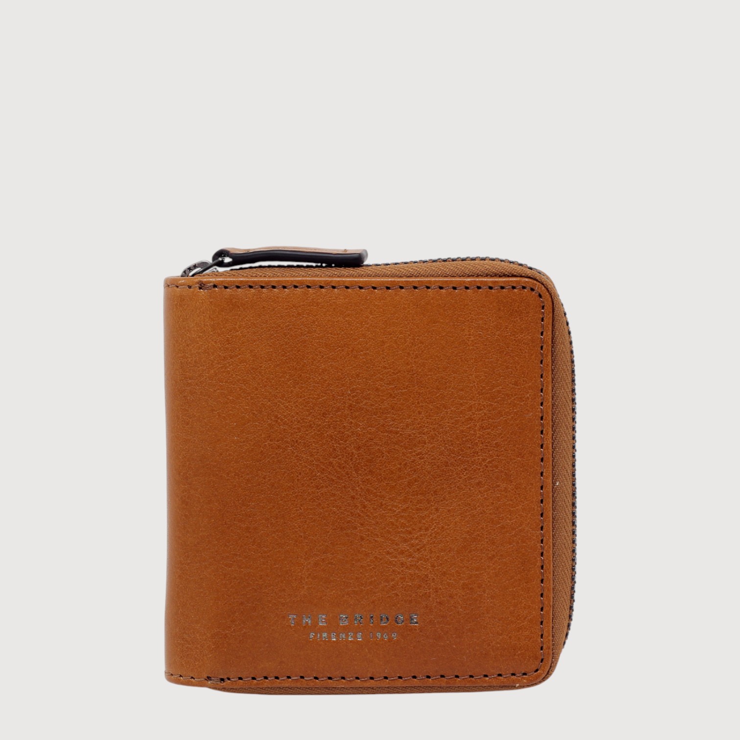 Portofel din piele naturala THE BRIDGE cu un compartiment pentru bancnote, 6 sloturi de card, sistem RFID, inchidere cu fermoar. Made in Italy