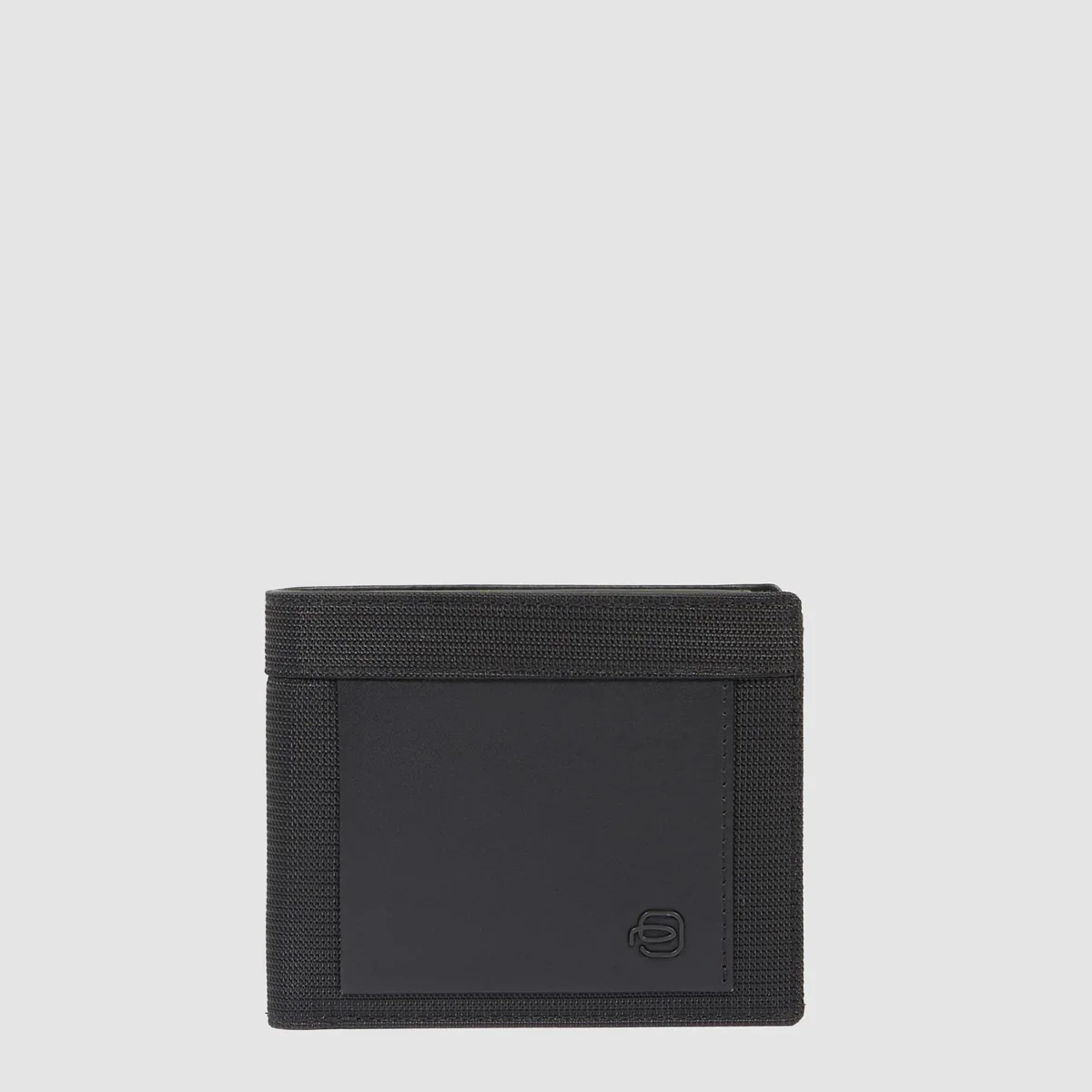 Portofel de barbati PIQUADRO din tesut si piele, cu doua compartimente pentru bancnote, buzunar pentru monede, 7 suporturi de card.