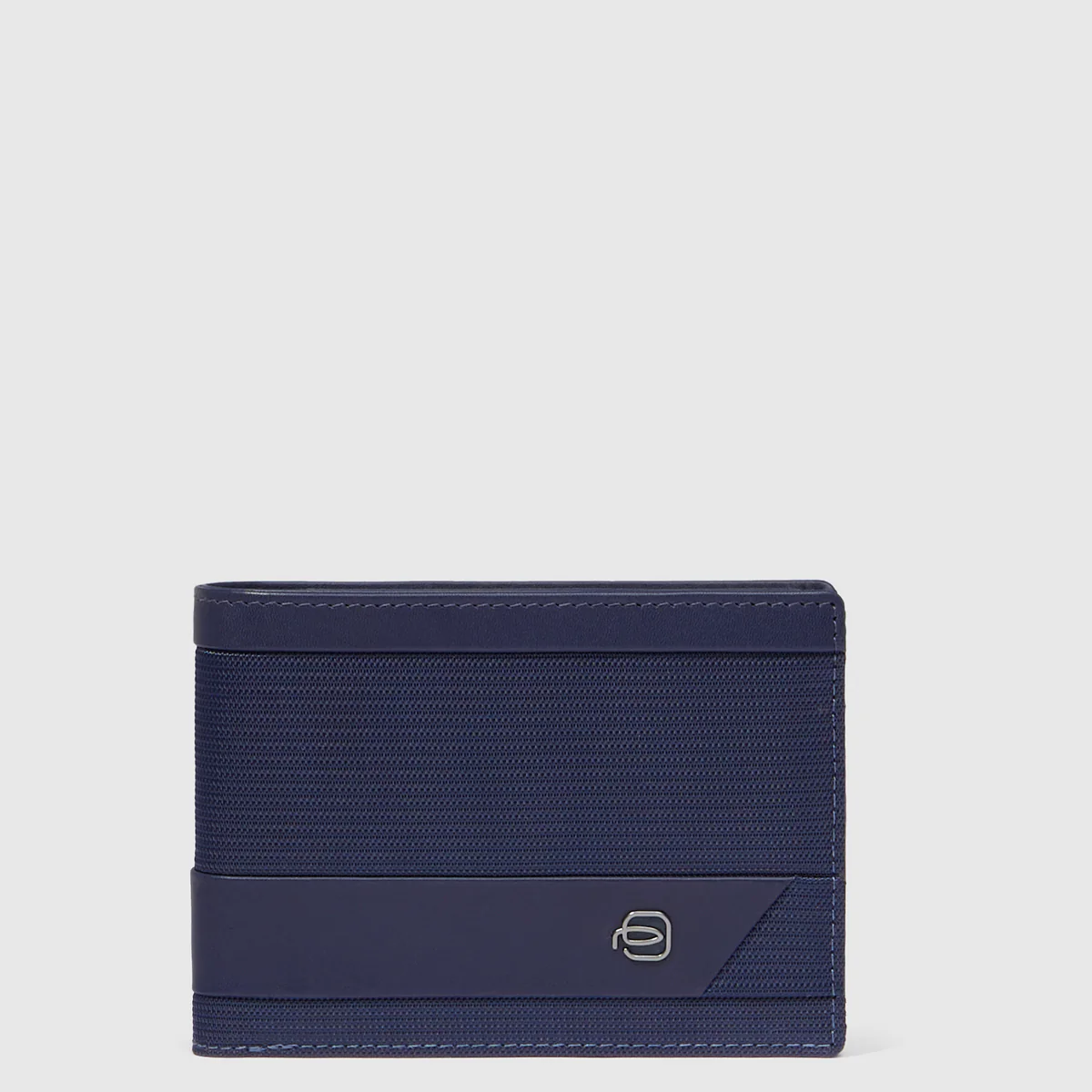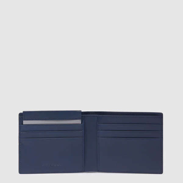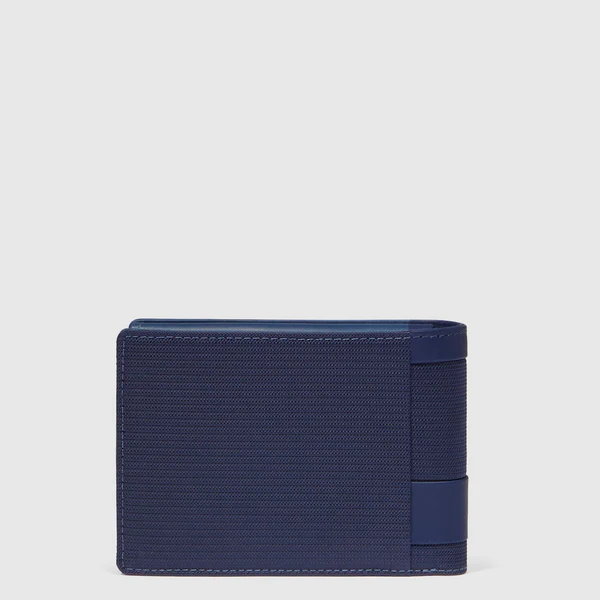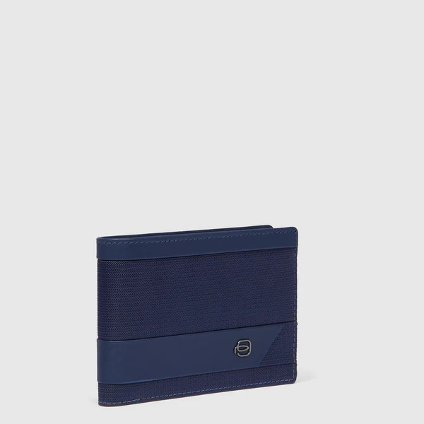Portofel de barbati Piquadro din piele naturala si tesut, cu doua compartimente pentru bancnote, 6 suporturi de card plus unul mobil, sistem RFID.