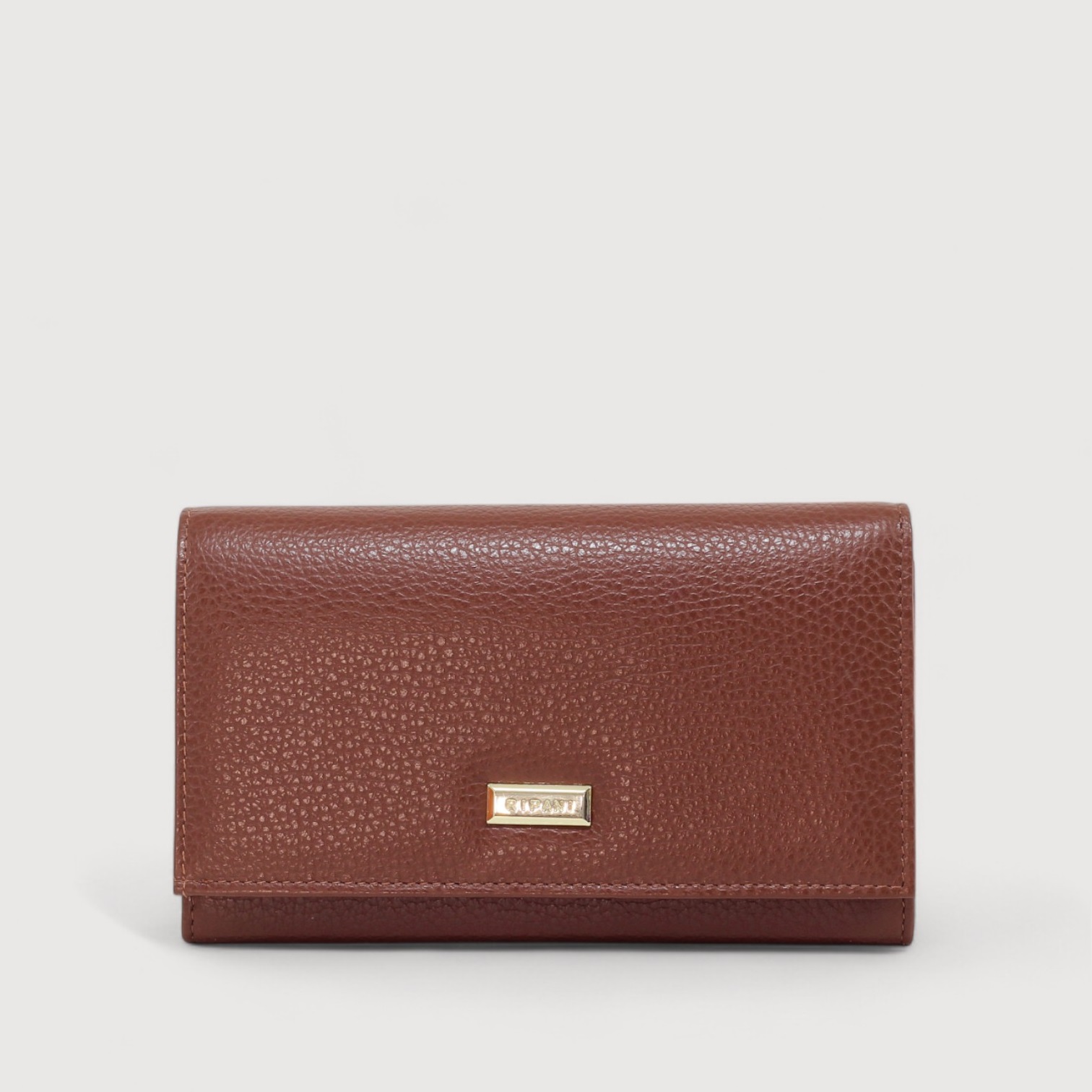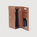 Portofel de dama Ripani din piele naturala, inchis cu capsa, cu un compartiment vertical pentru bancnote, trei compartimente orizontale, 4 portcarduri, 2 buzunare inchise cu fermoar, alte buzunare diverse. Made in Italy