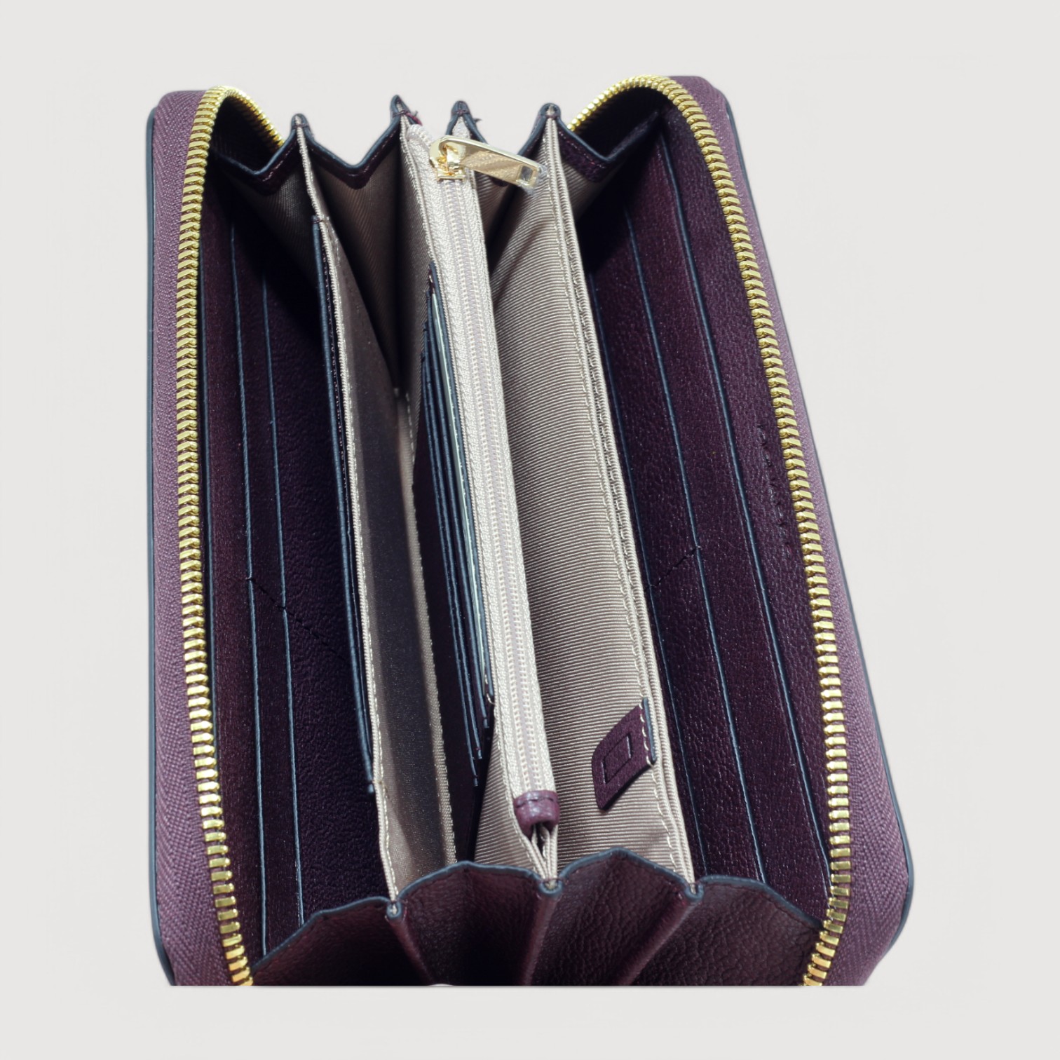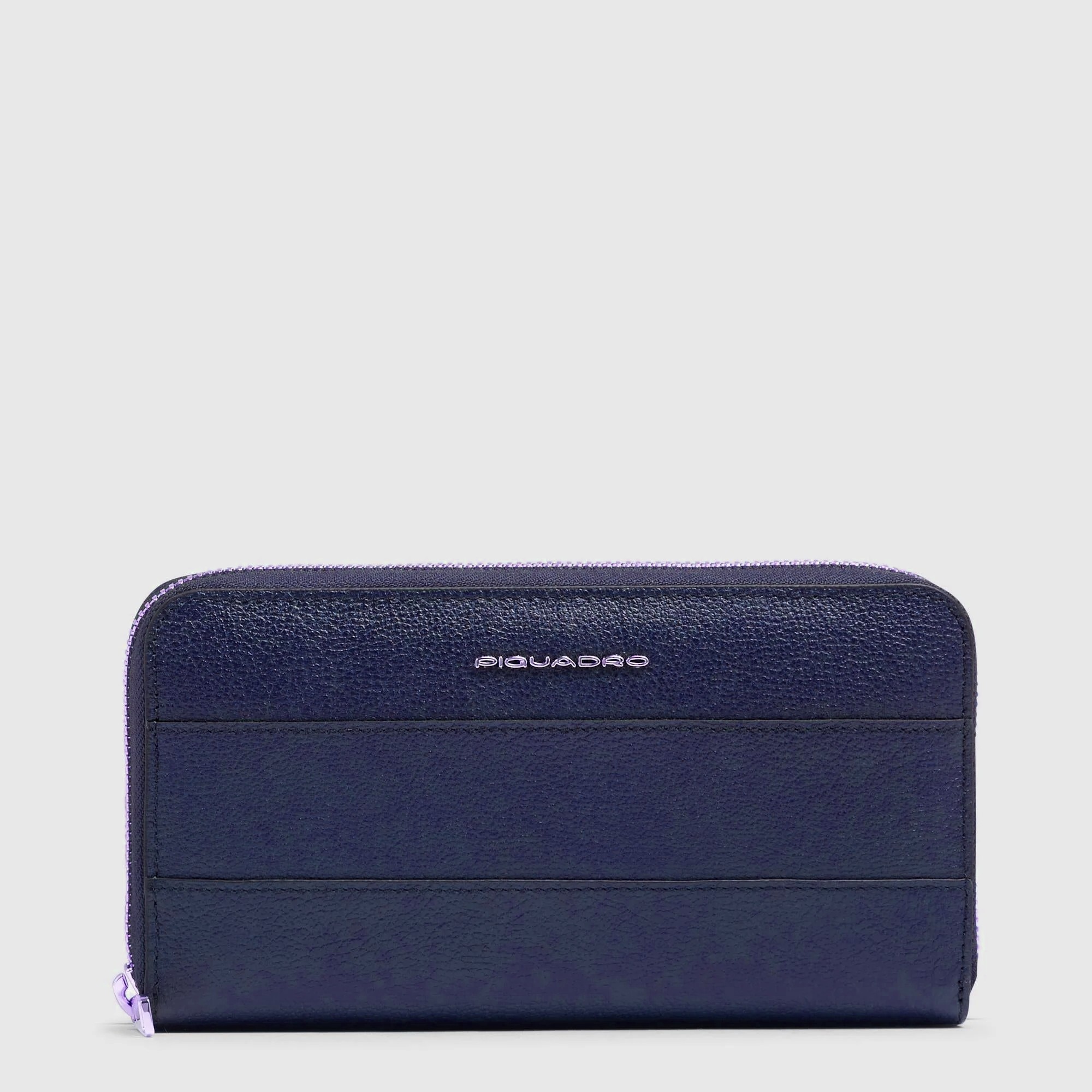 Portofel PIQUADRO din piele naturala, cu 4 compartimente la interior, buzunar cu fermoar, 12 suporturi de card, suport telefon, inchidere cu fermoar, sistem RFID.