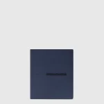 Portofel mic vertical PIQUADRO din piele naturala, cu doua compartimente pentru bancnote, buzunar pentru monede, 6 suporturi de card, sistem RFID.