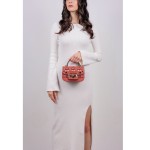 Poseta de mana CROMIA din piele naturala, cu un compartiment inchis cu capac si accesoriu rotativ, buzunar interior, curea de umar, reglabila si detasabila, decoratii din piele si strasuri. Made in Italy