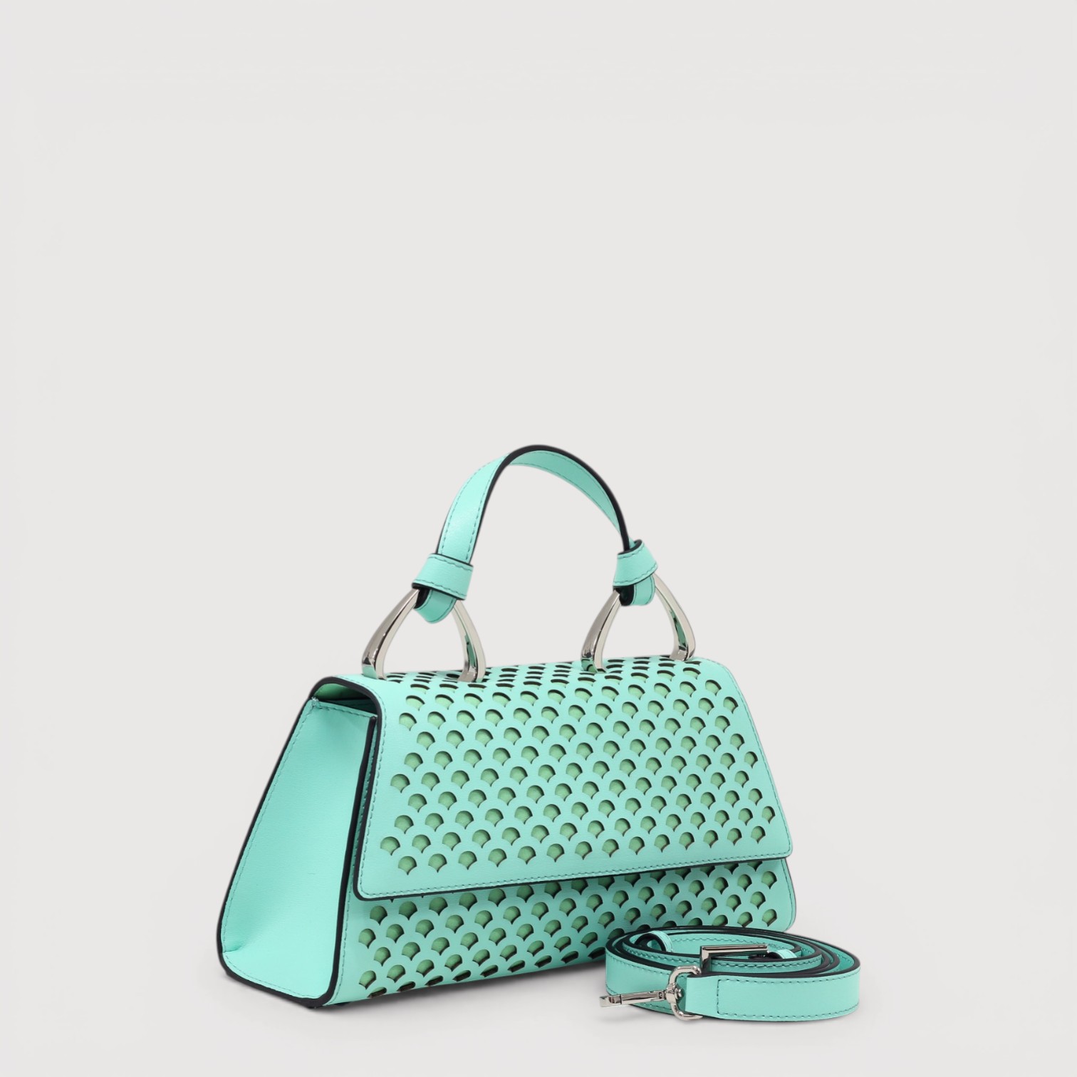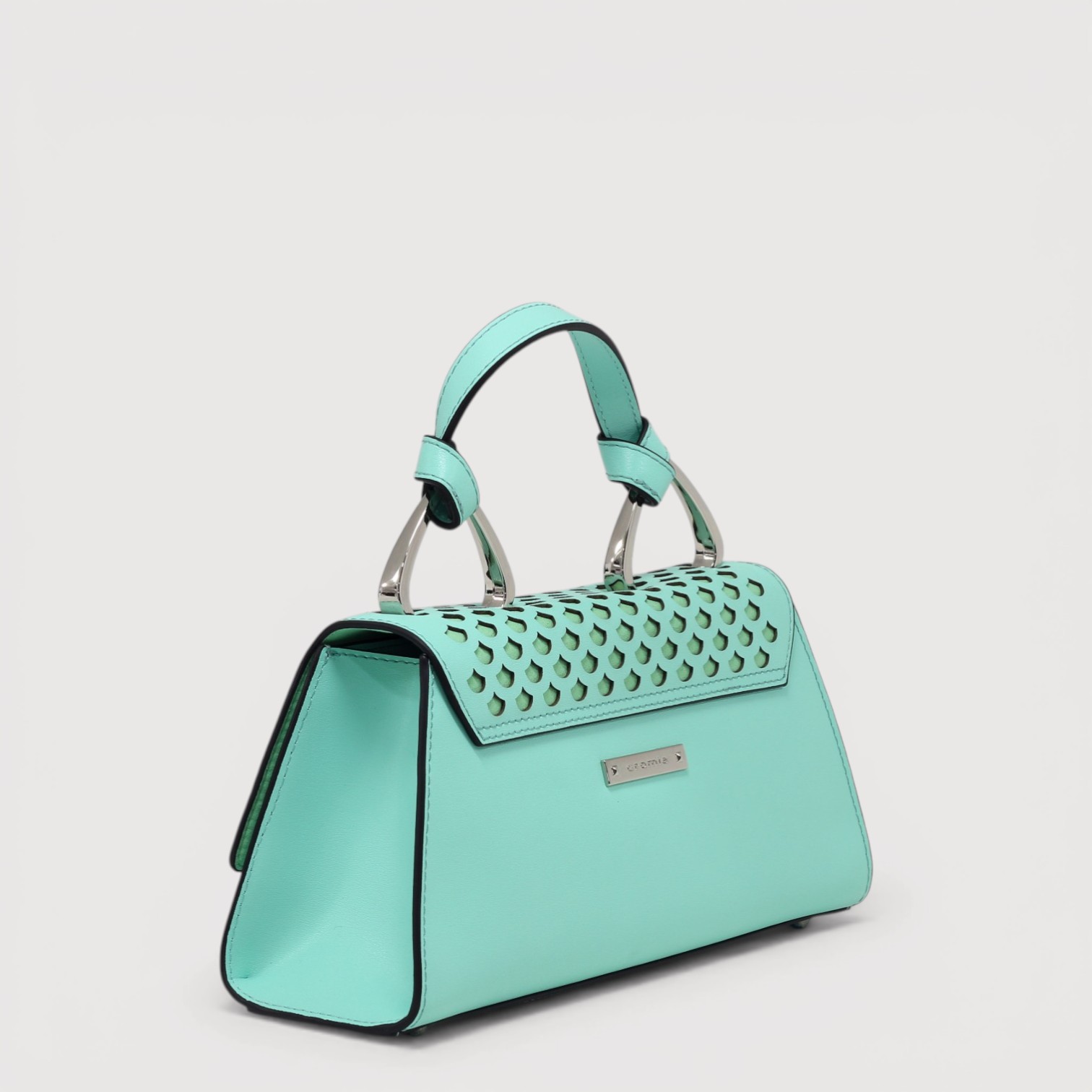 Poseta de mana CROMIA din piele naturala, cu un compartiment inchis cu capac si buton magnetic, buzunare interioare multifunctionale, curea de umar, din piele, reglabila si detasabila, accesorii argintii. Made in Italy