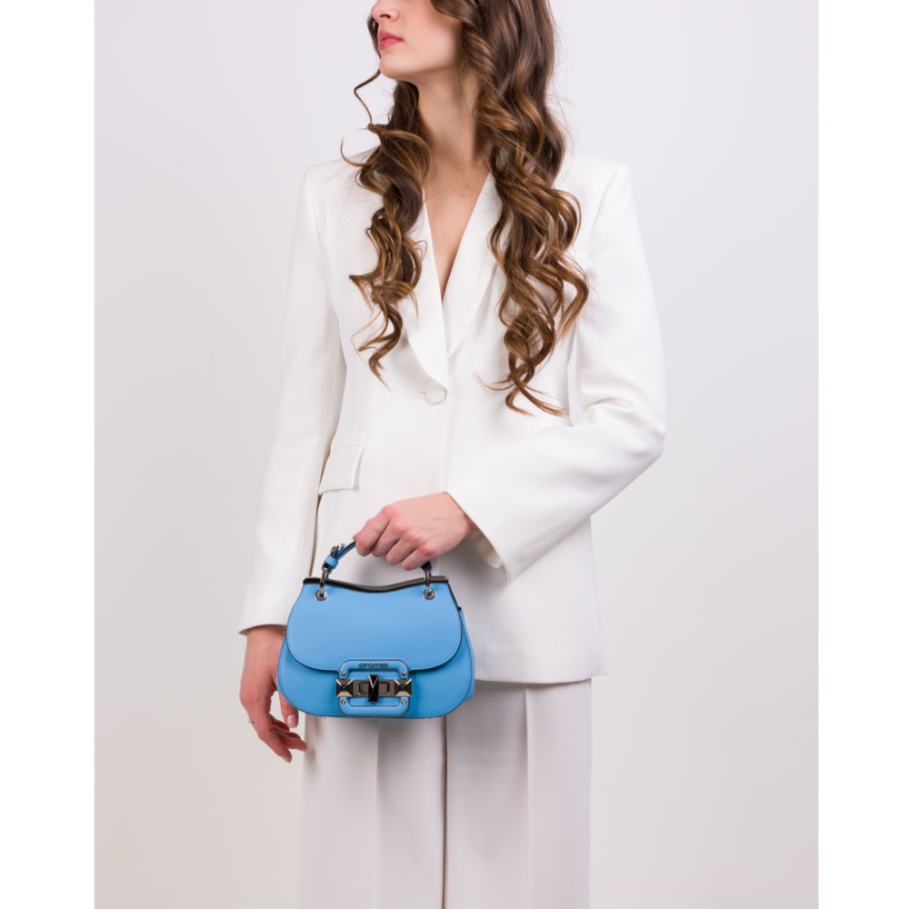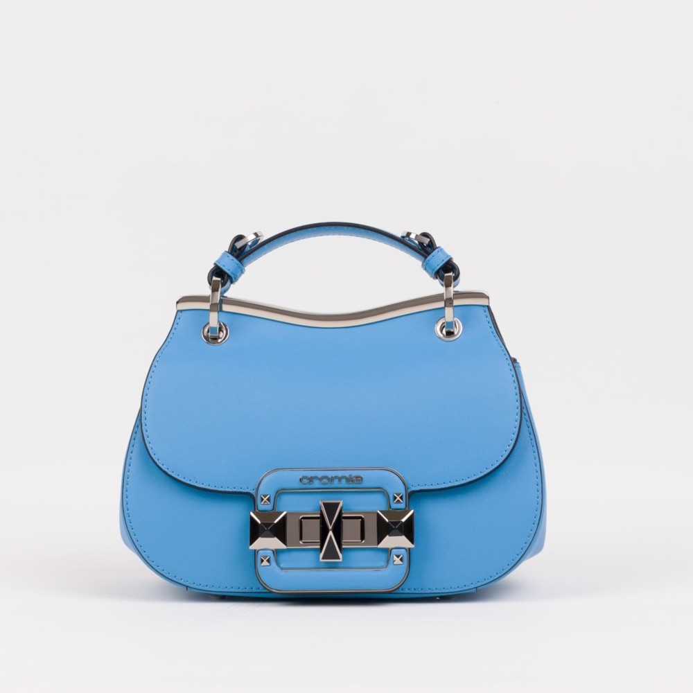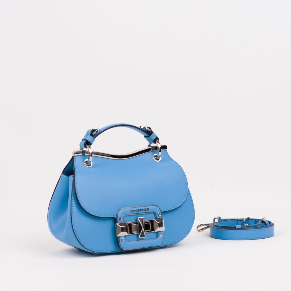 Poseta eleganta CROMIA din piele naturala, cu un compartiment inchis cu capac si accesoriu rotativ, curea de umar, din piele, reglabila si detasabila, accesorii argintii.