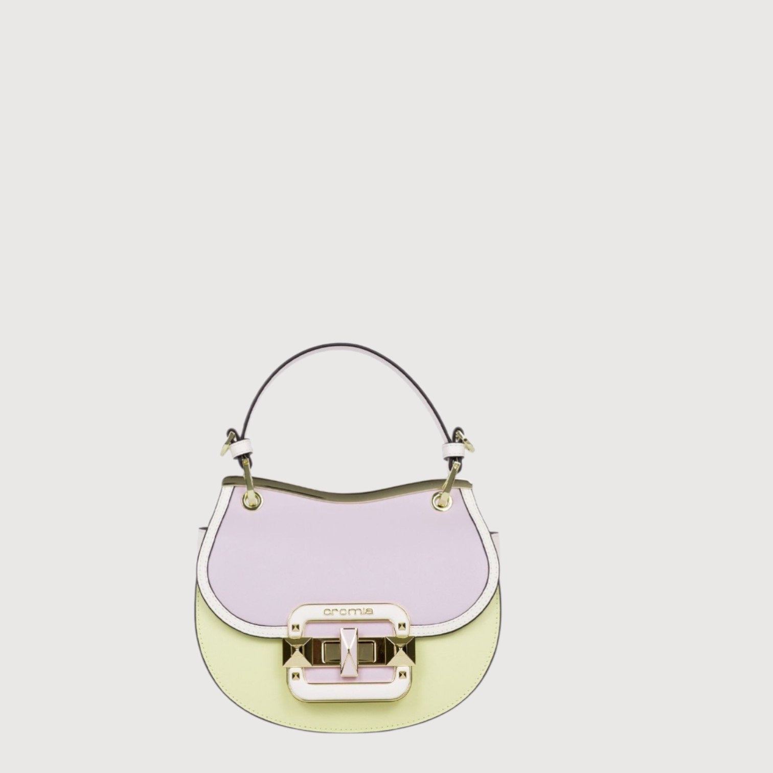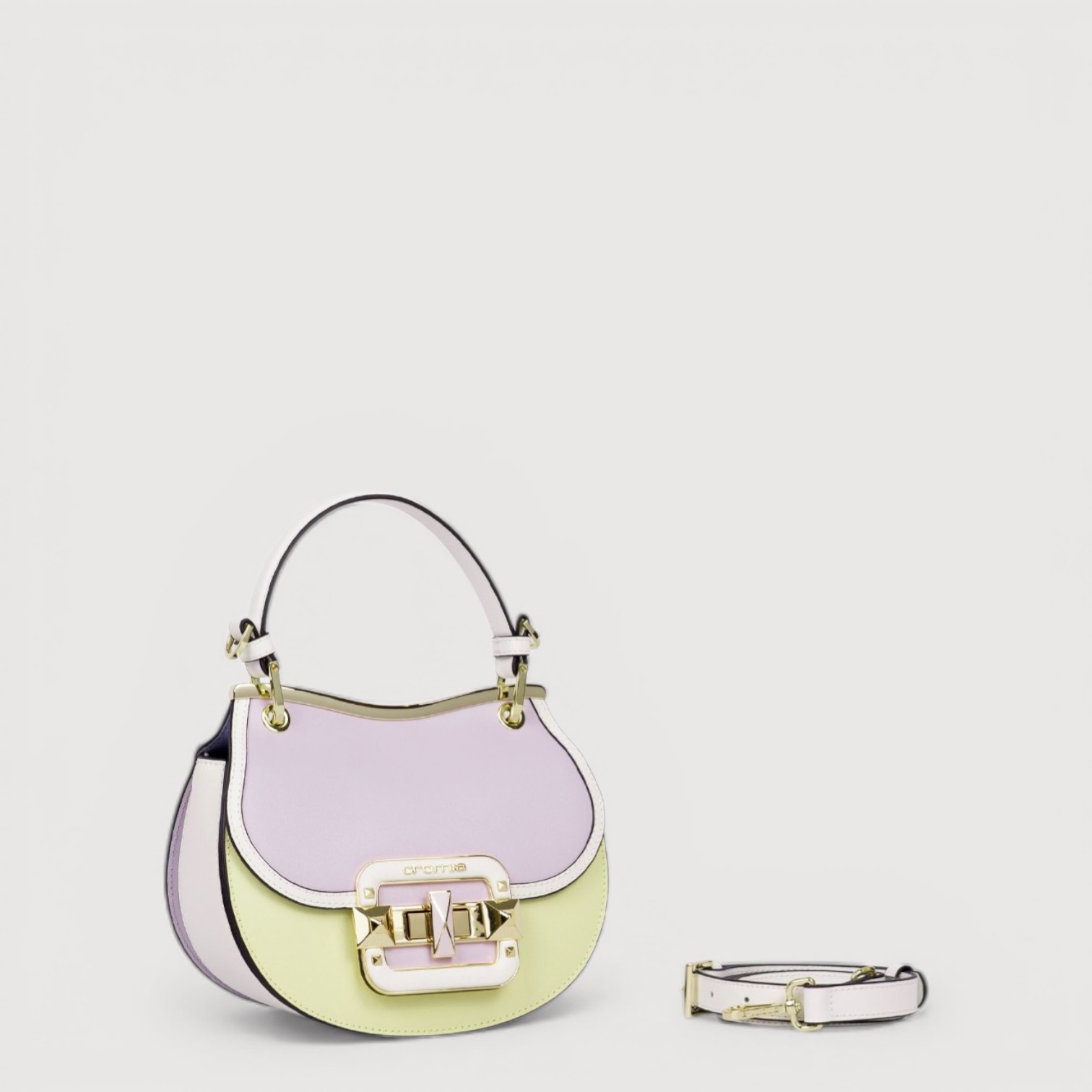 Poseta eleganta CROMIA din piele naturala, cu un compartiment inchis cu capac si accesoriu rotativ, buzunare interioare, curea de umar, din piele, reglabila si detasabila, accesorii aurii. Made in Italy