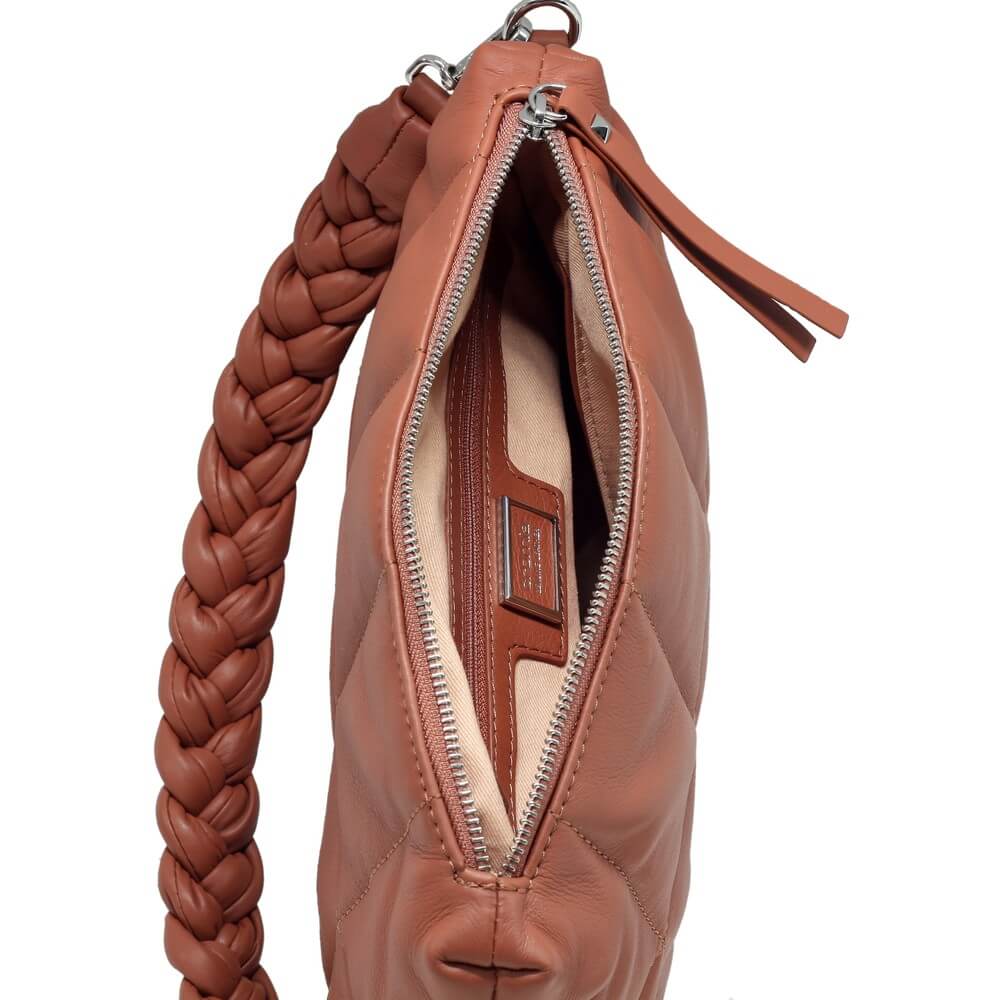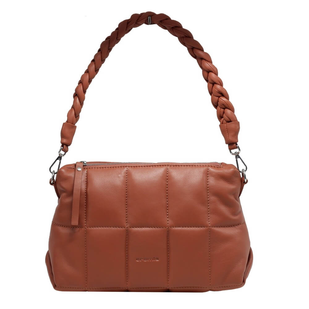 Poseta de dama CROMIA din piele naturala matlasata, cu un compartiment inchis cu fermoar, buzunare interioare multifunctionale, curea scurta de umar, impletita, curea lunga, din piele, reglabila si detasabila, accesorii argintii.