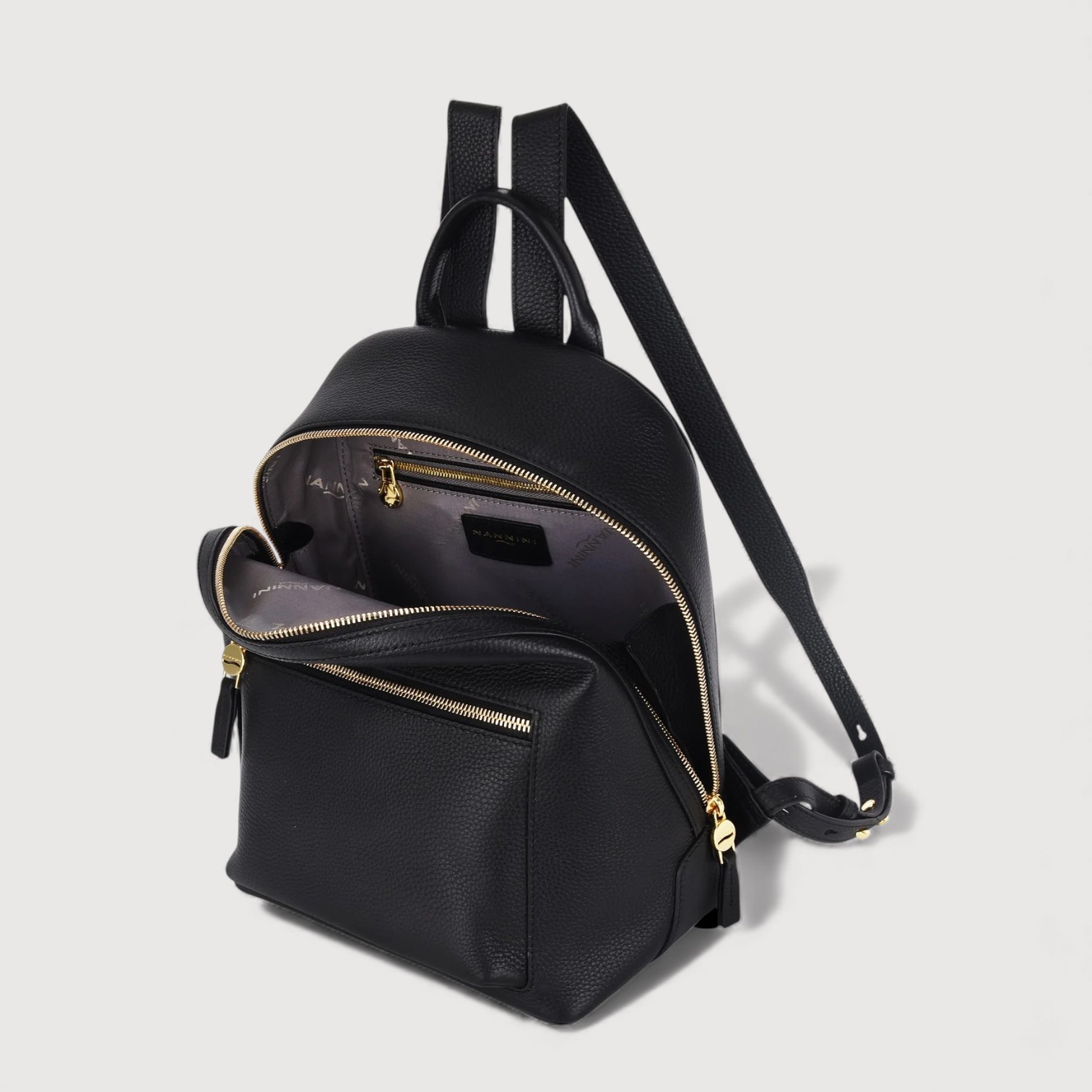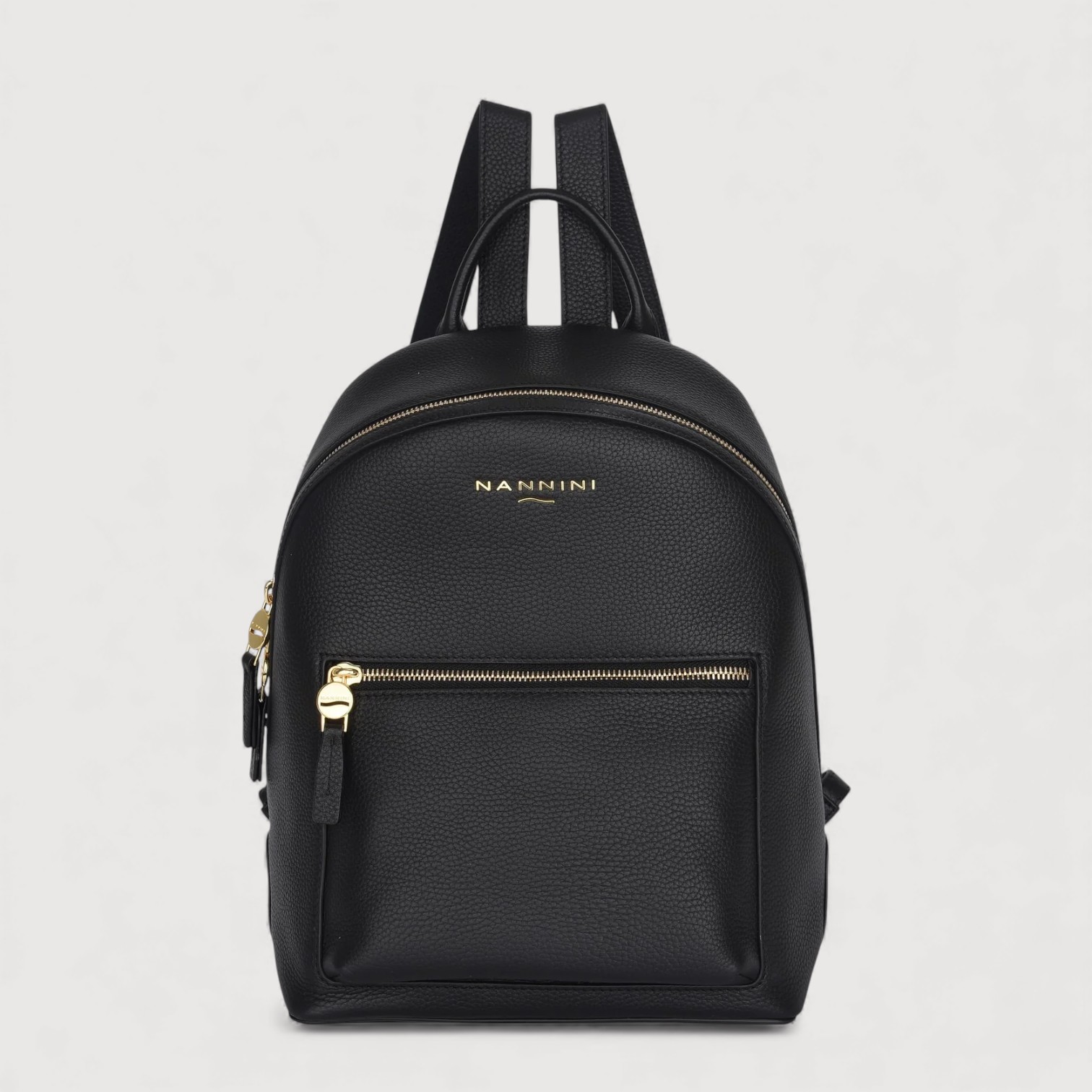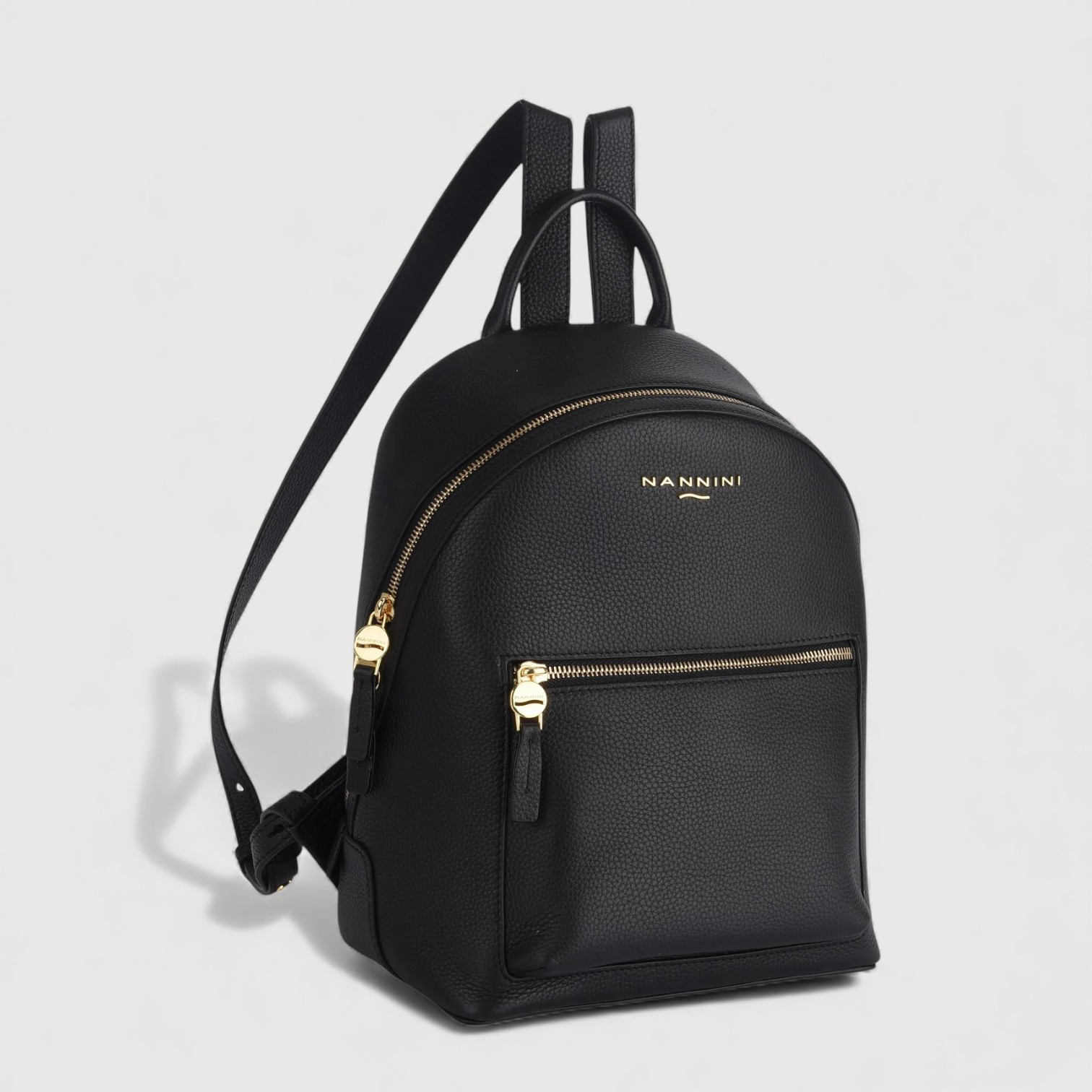 Rucsac de dama NANNINI din piele naturala, cu un compartiment inchis cu fermoar, buzunare multifunctionale la interior, doua la exterior, curele de umar, reglabile, accesorii aurii.