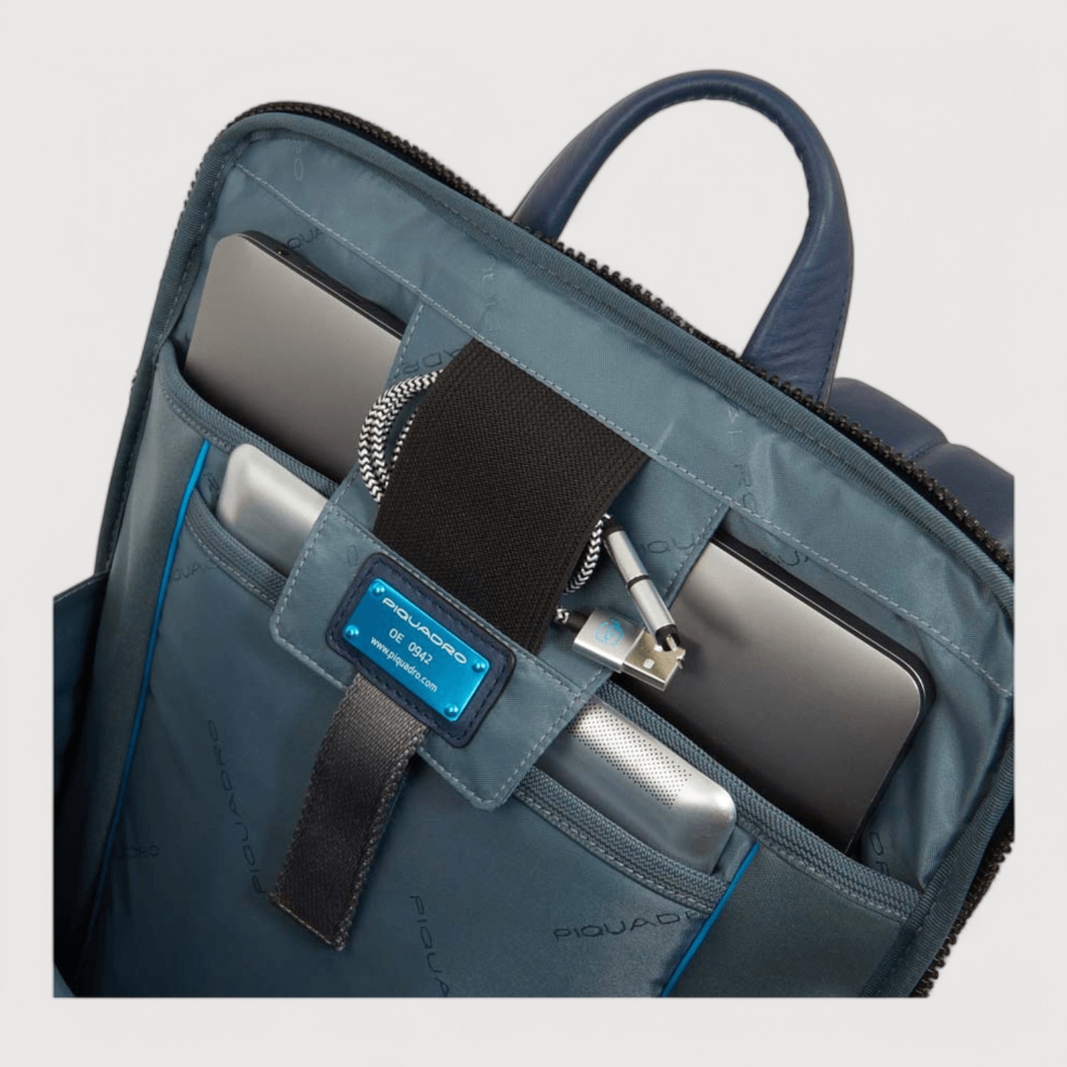 Rucsac mare PIQUADRO din piele naturala, 2 compartimente, portlaptop 15,6”, CA5989S123/BLU