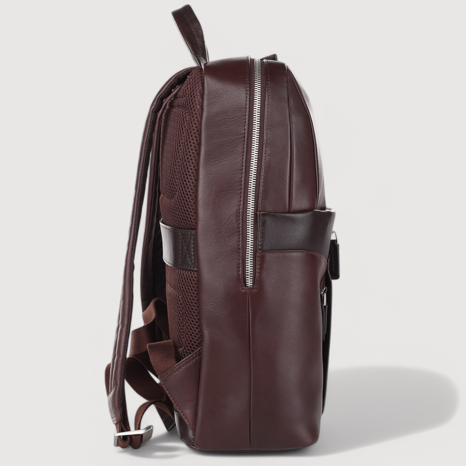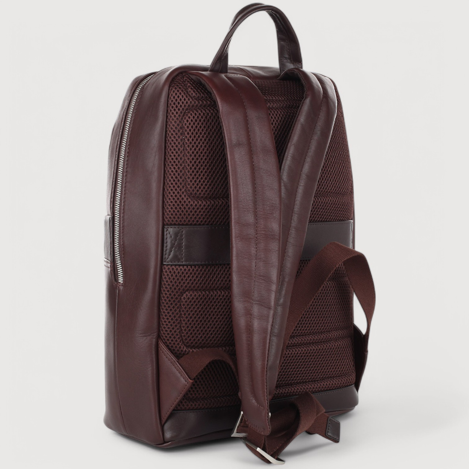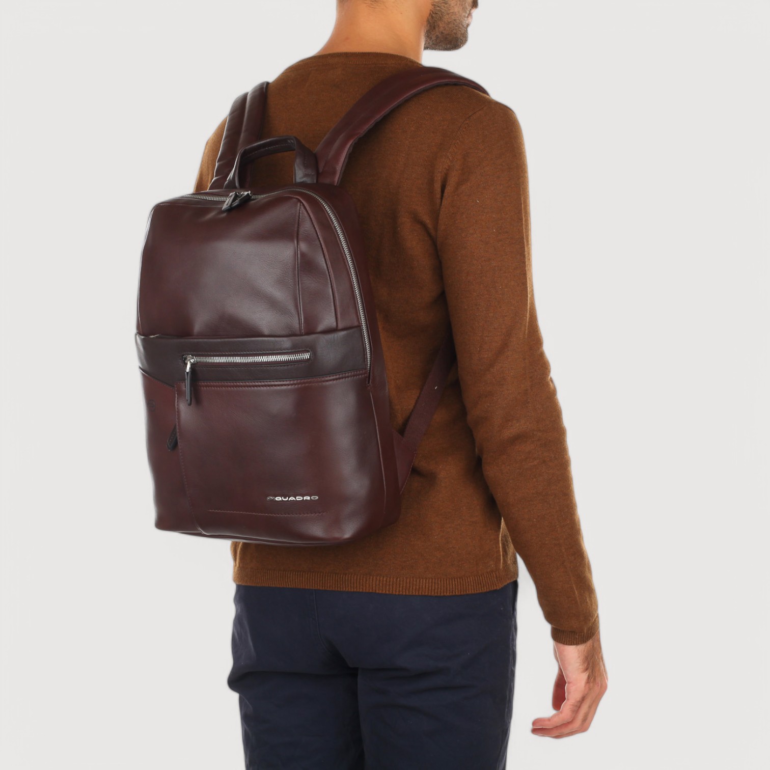 Rucsac PIQUADRO din piele naturala, cu un compartiment inchis cu fermoar, buzunare interioare cu protectie pentru un laptop de 13,3” , telefon, pixuri, connequ, etc, la exterior are trei buzunare cu fermoar, unul pe spate, suport troler, curele de umar, din piele, ergonomice si reglabile, sistem de ventilatie pentru spate, greutate 0,9kg.