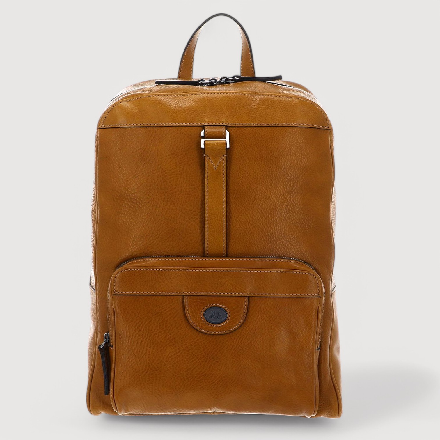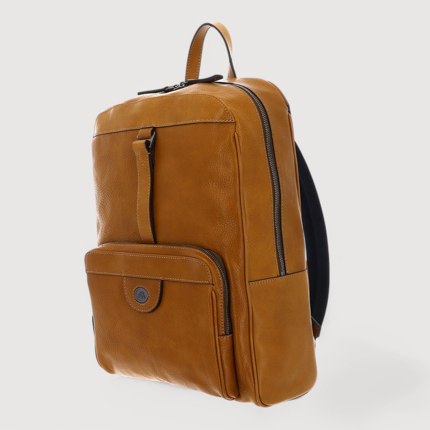 Rucsac THE BRIDGE din piele naturala vachetta, cu un compartiment inchis cu fermoar, buzunare interioare cu protectie pentru un laptop de 14” si o tableta de 12,9”, telefon, pixuri, etc, un buzunar exterior, sistem de ventilatie pentru spate, curea pentru troler, curele de umar, reglabile, greutate 1170gr. Made in Italy