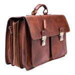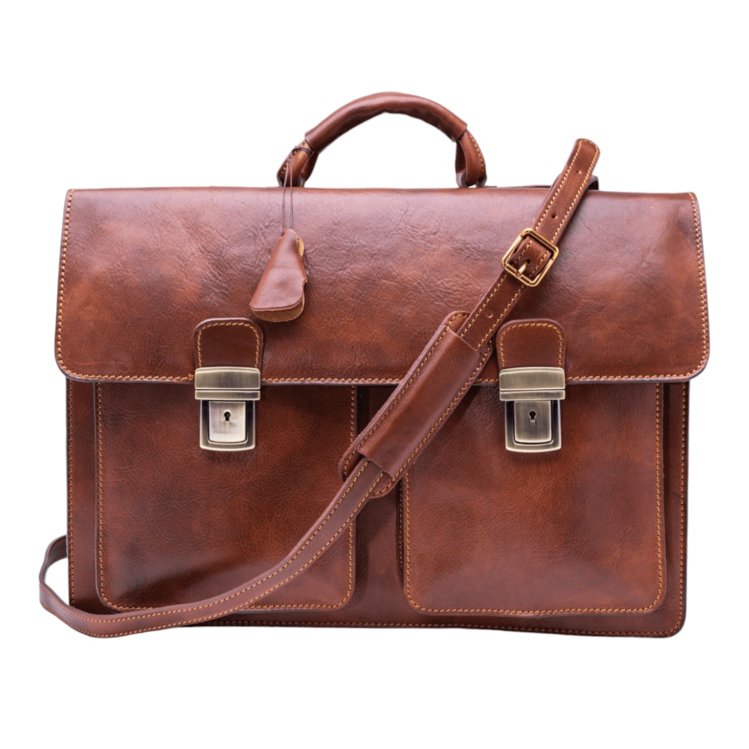 Servieta din piele naturala vacchetta cu trei compartimente dintre care unul inchis cu fermoar si care este destinat unui laptop, doua buzunare frontale, curea de umar din piele, reglabila si detasabila, captuseala din piele naturala, greutate 1,89kg. Made in Italy.