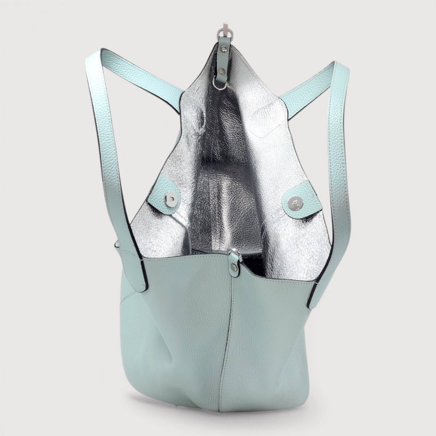 Shopper RIPANI din piele naturala, cu dubla forma, cu un compartiment inchis cu un buton magnetic. Made in Italy